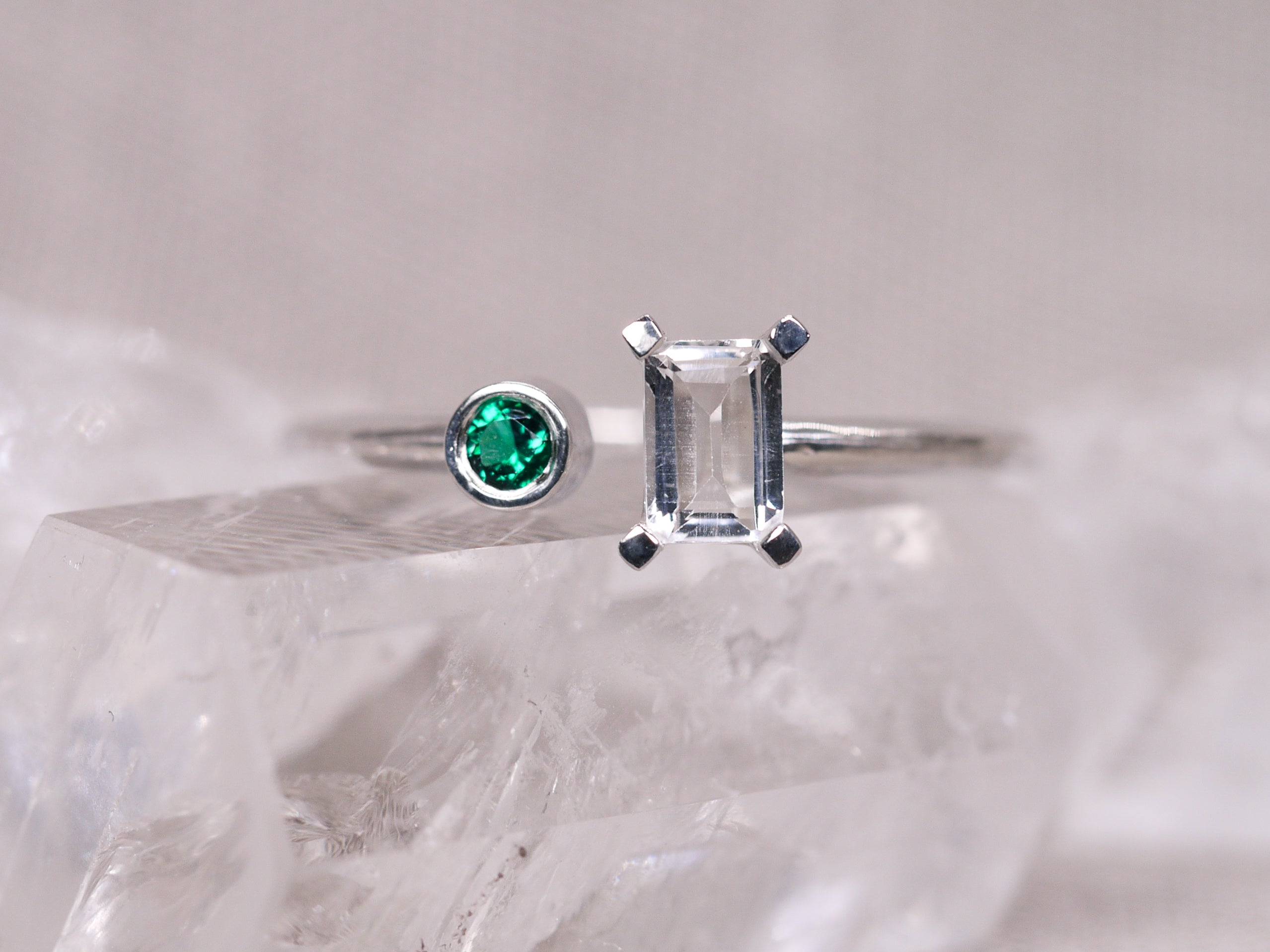 ECHO Ring - White Topaz and Emerald