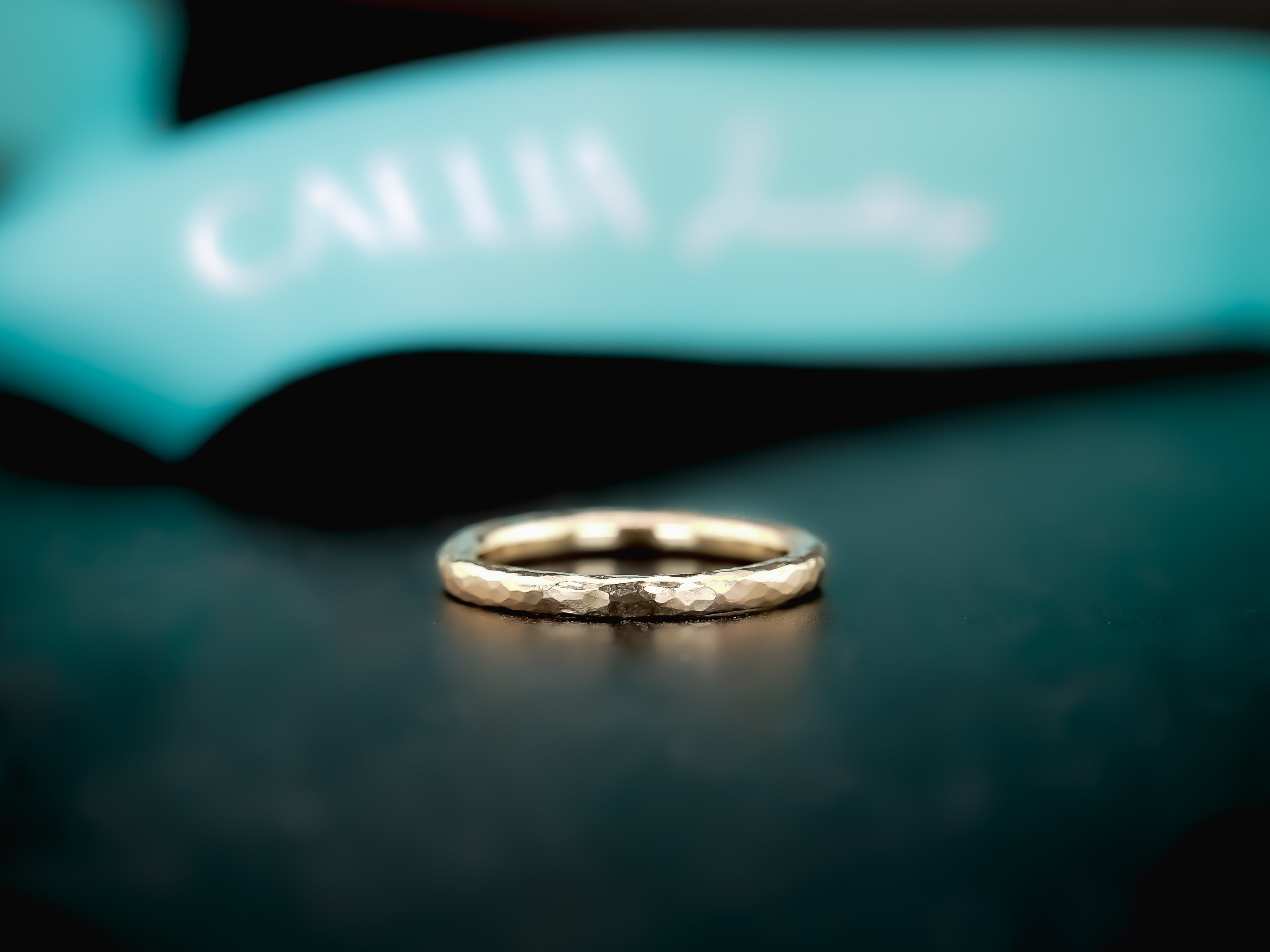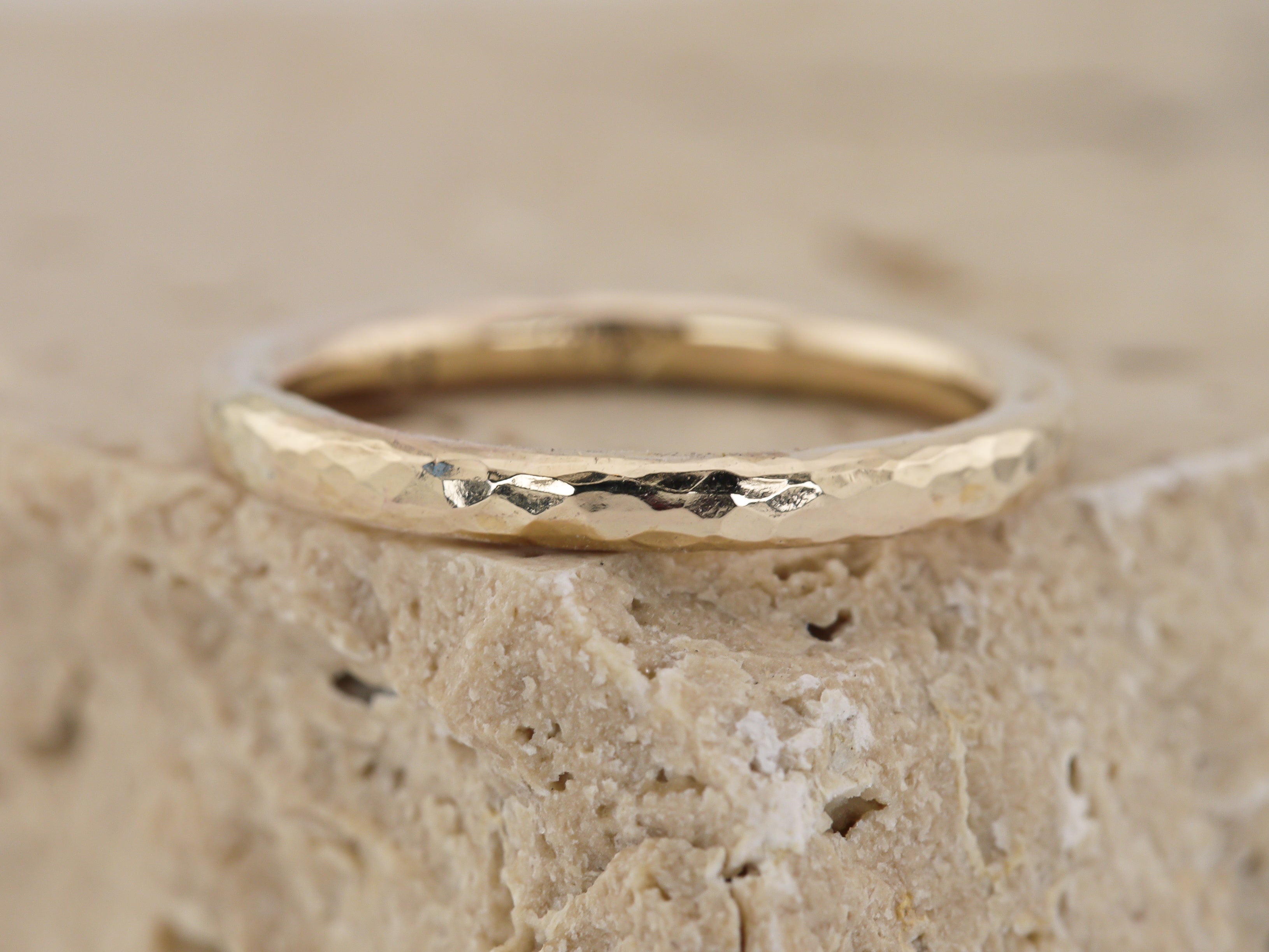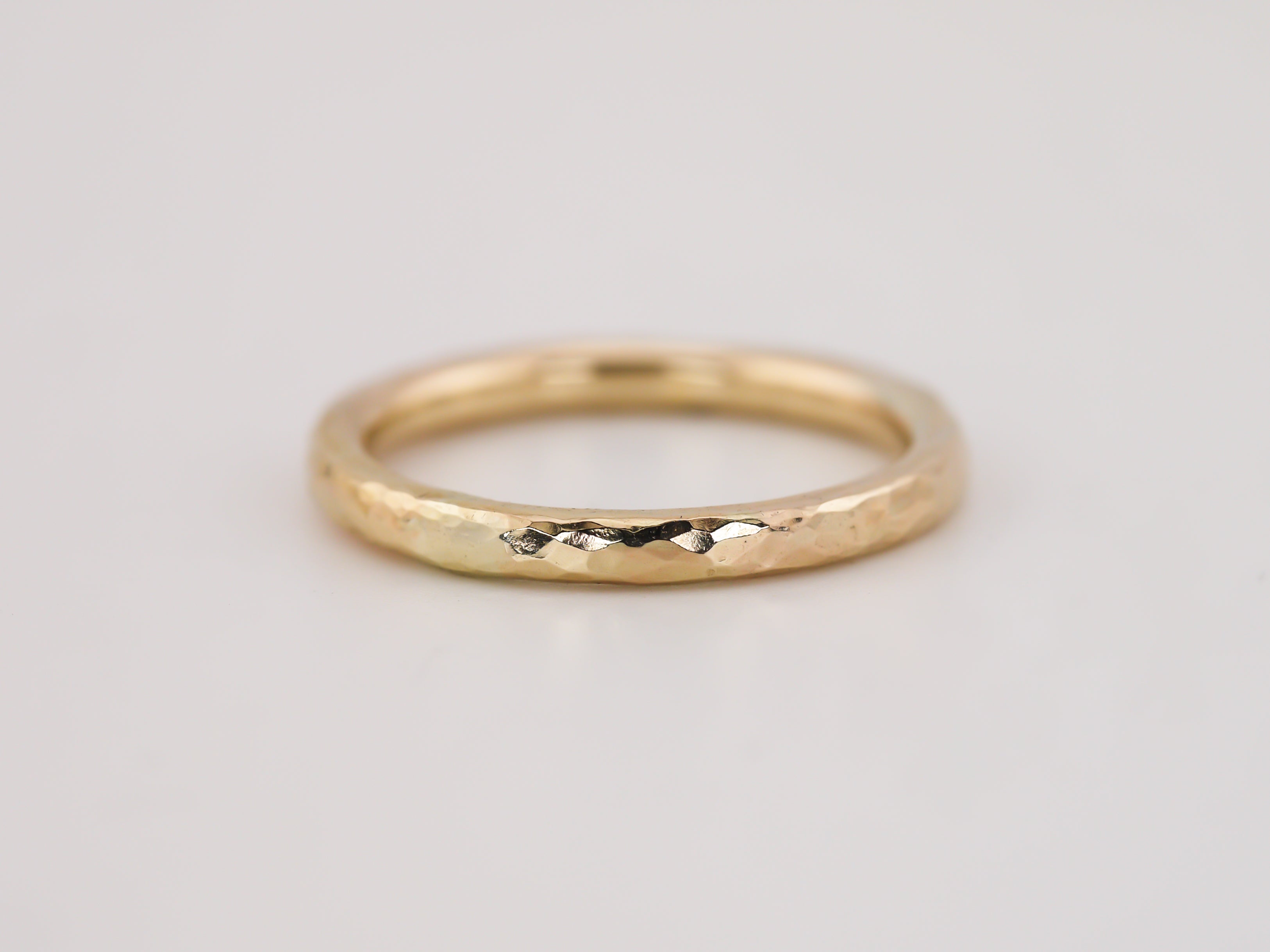 The way the Hammered ring is textured, it captures the dancing reflective light, adding depth to your ring stack.
