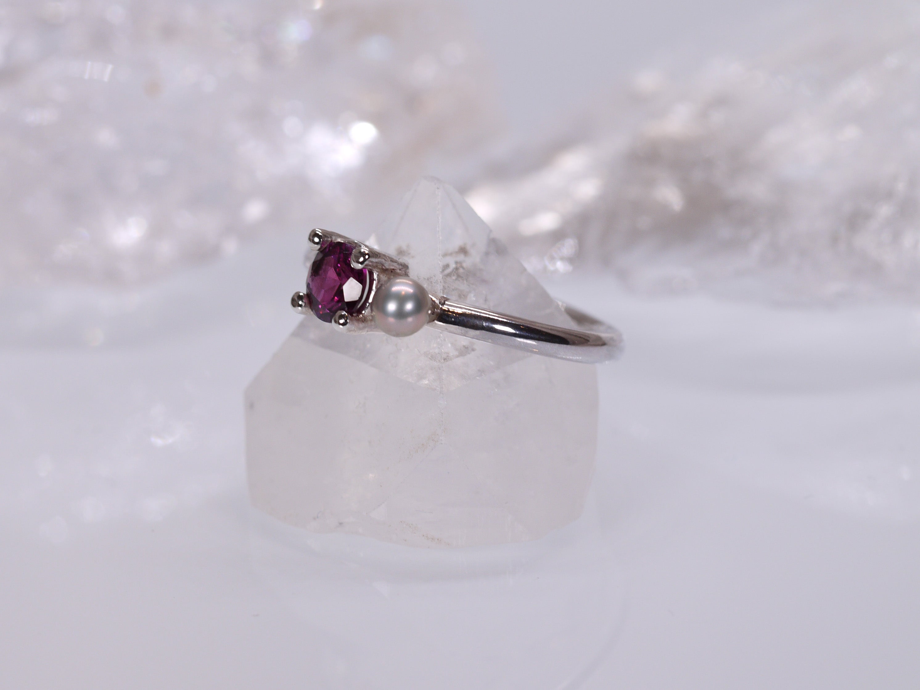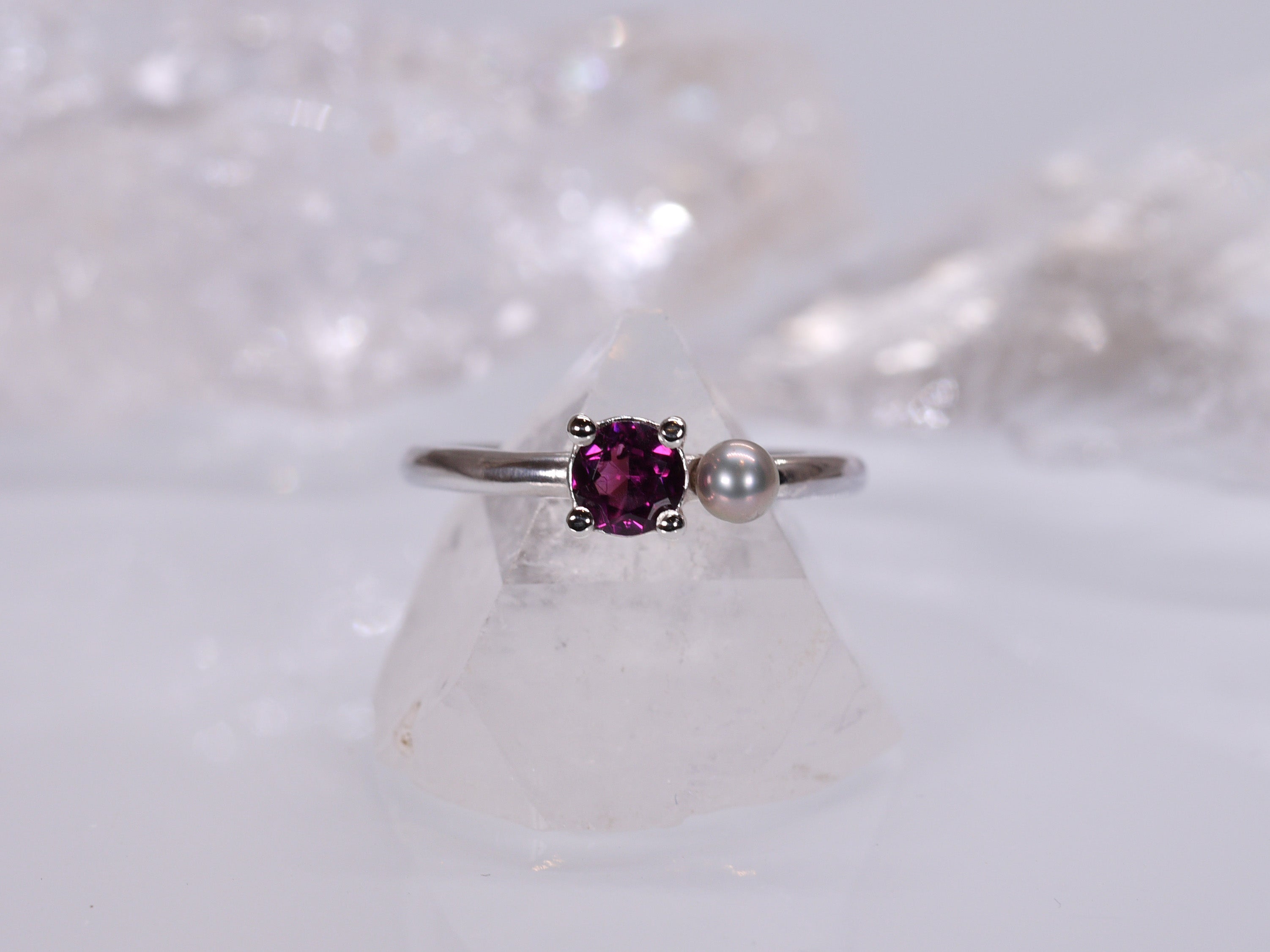 DELILAH Duet Ring - Pink Rhodolite Garnet & Freshwater Pearl