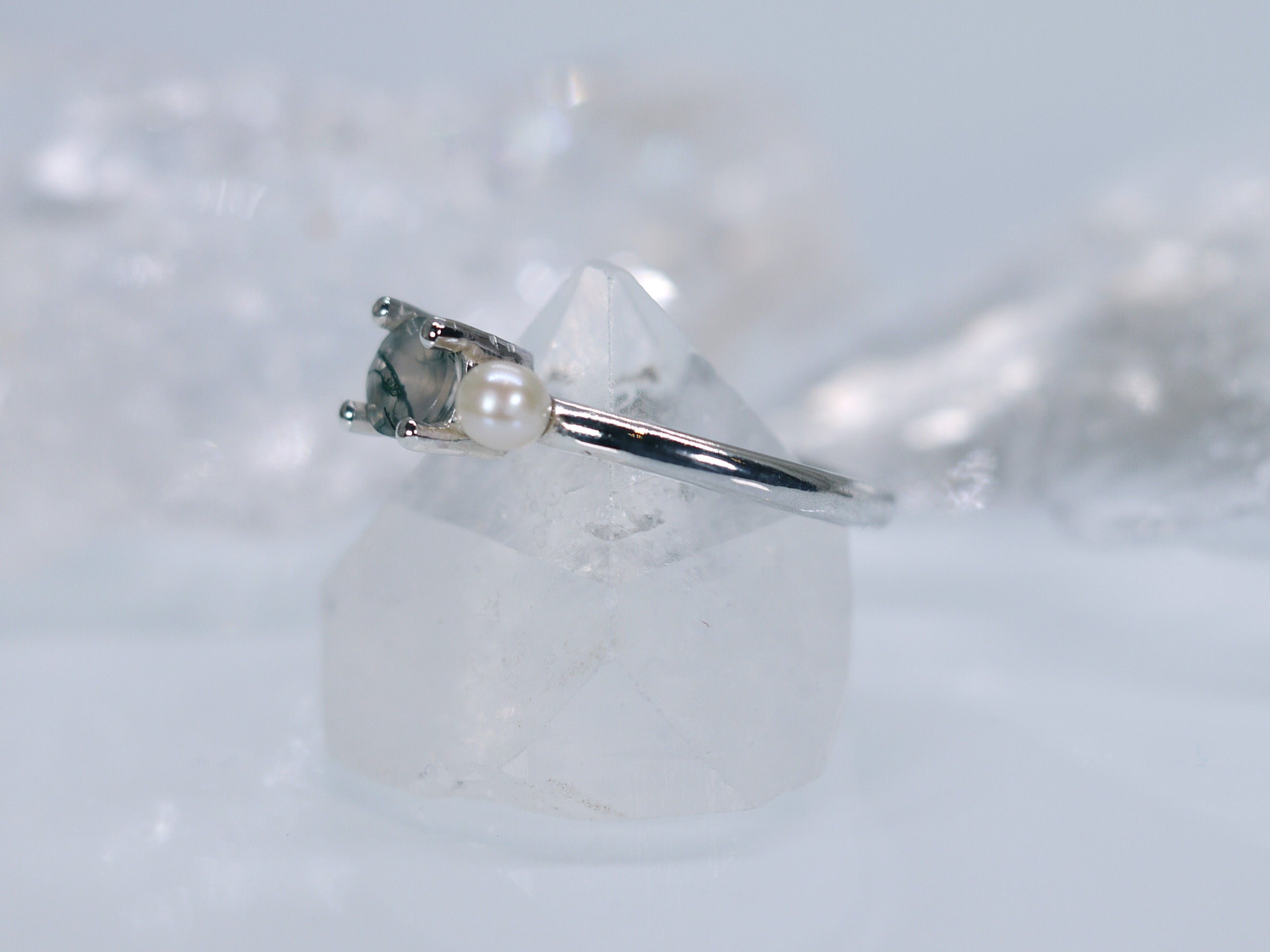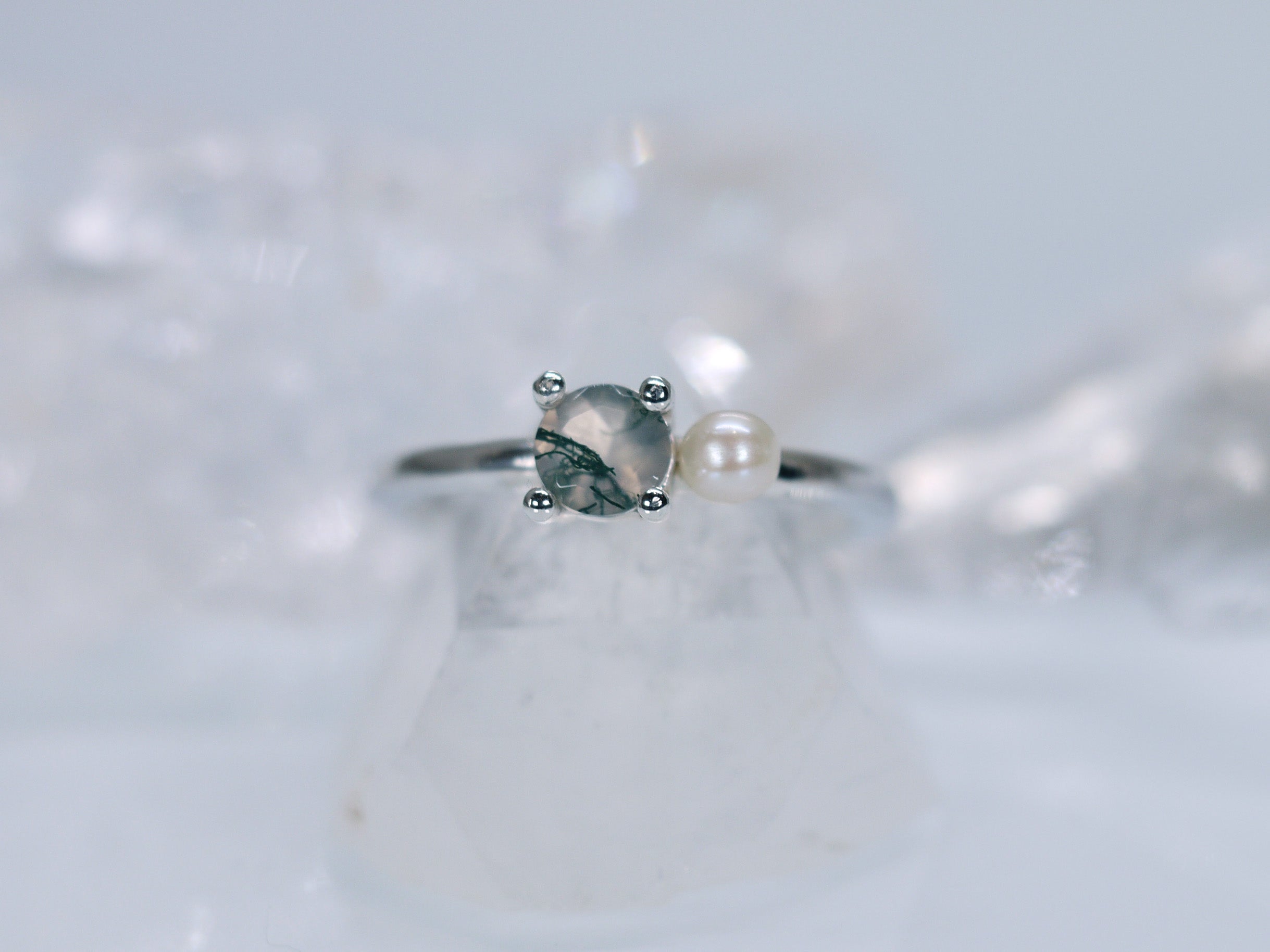 DELILAH Duet Ring - Moss Agate & Freshwater Pearl