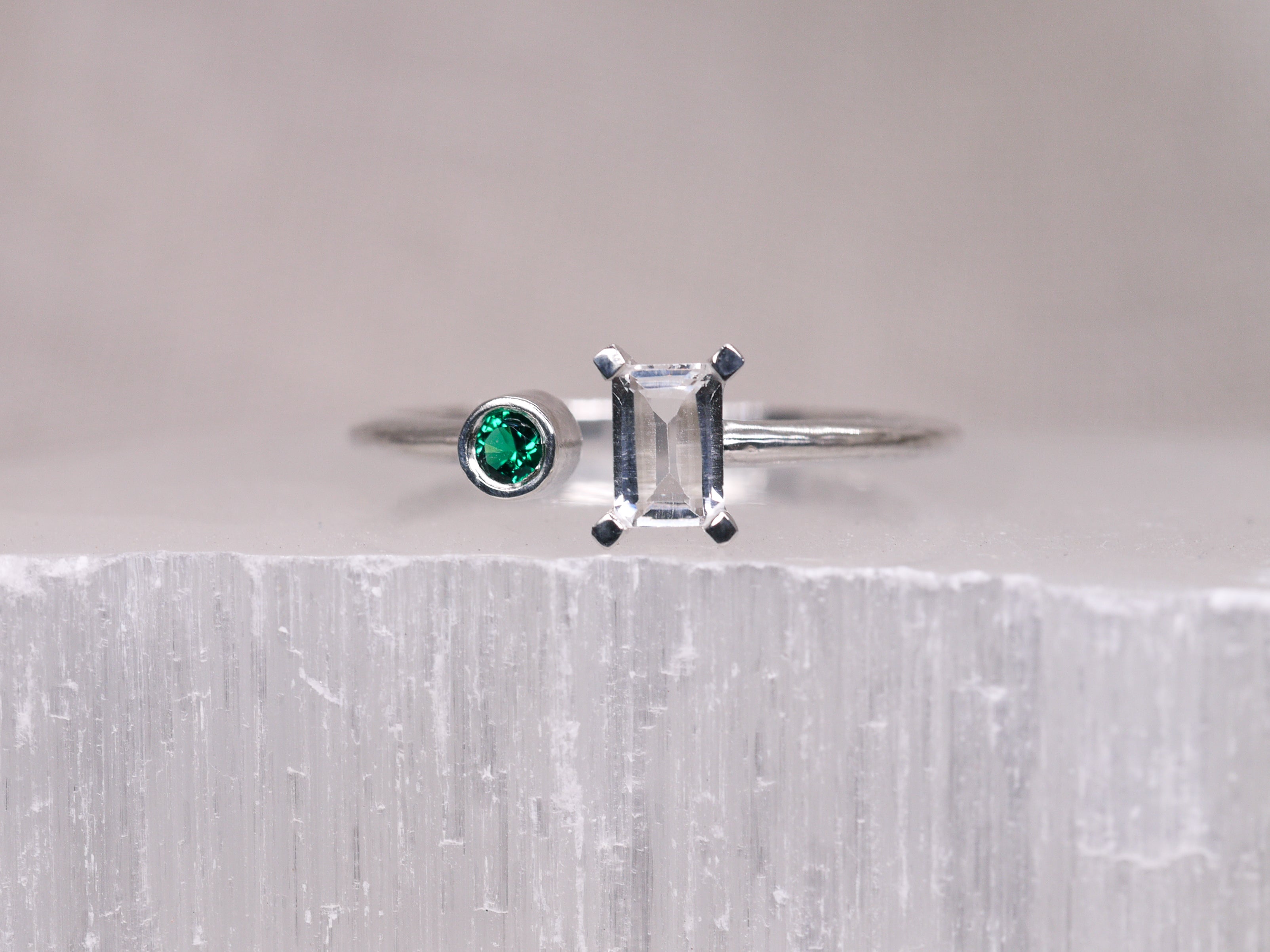 ECHO Ring - White Topaz and Emerald