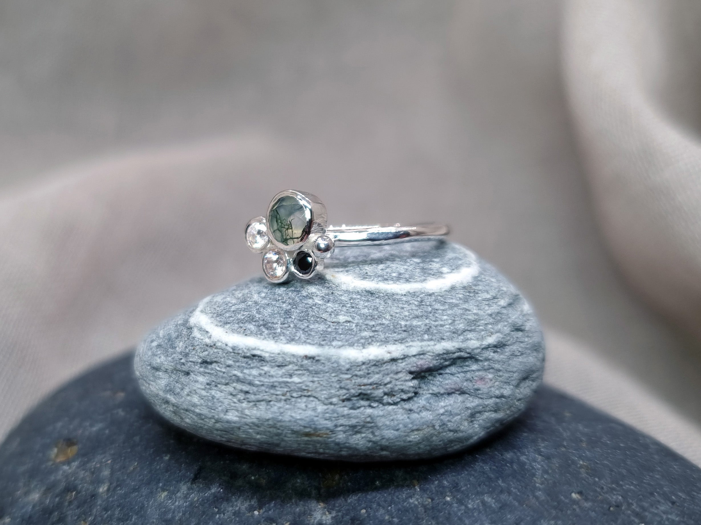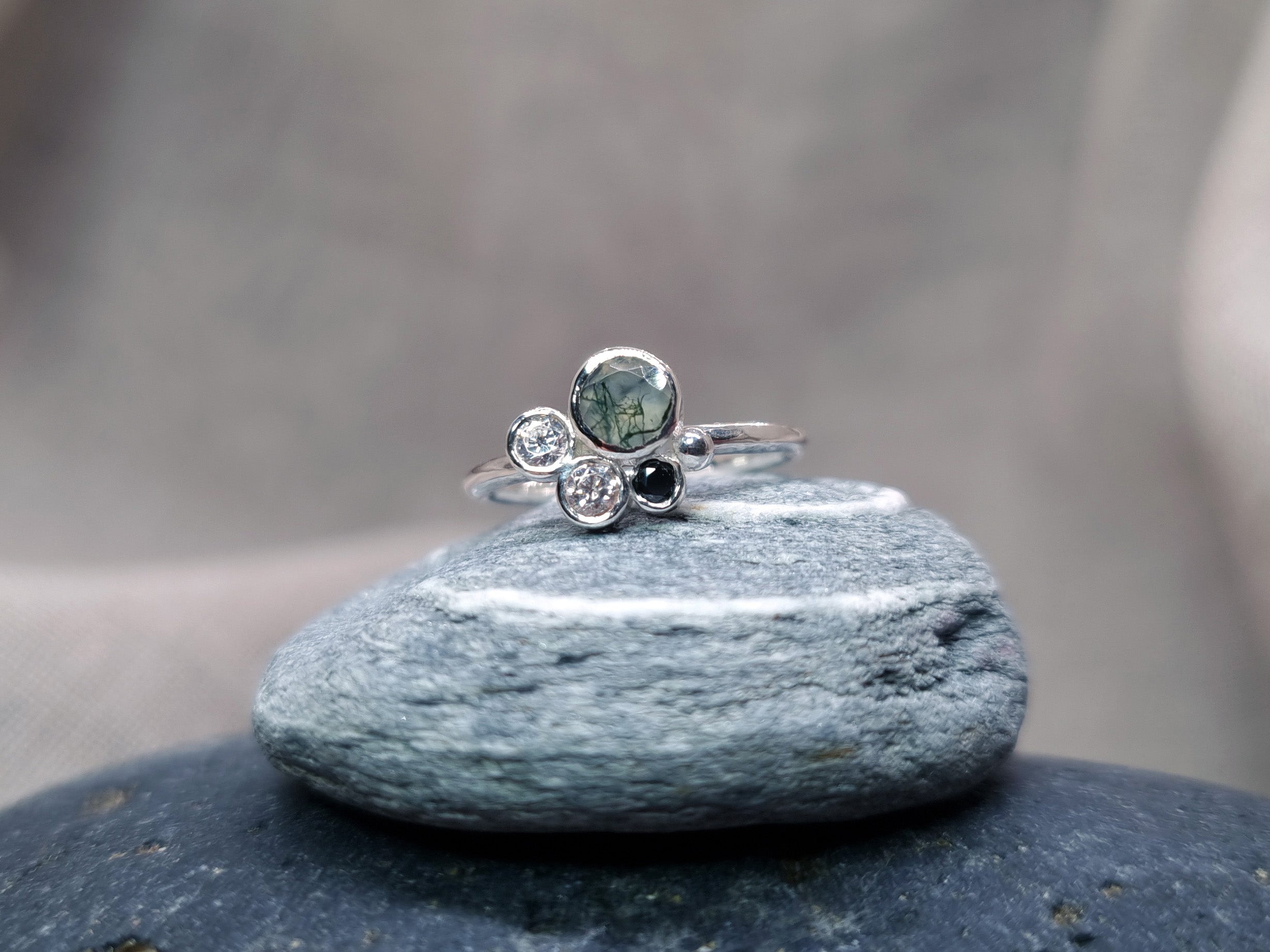 HALLEY Cluster Ring - Moss Agate and Sapphire
