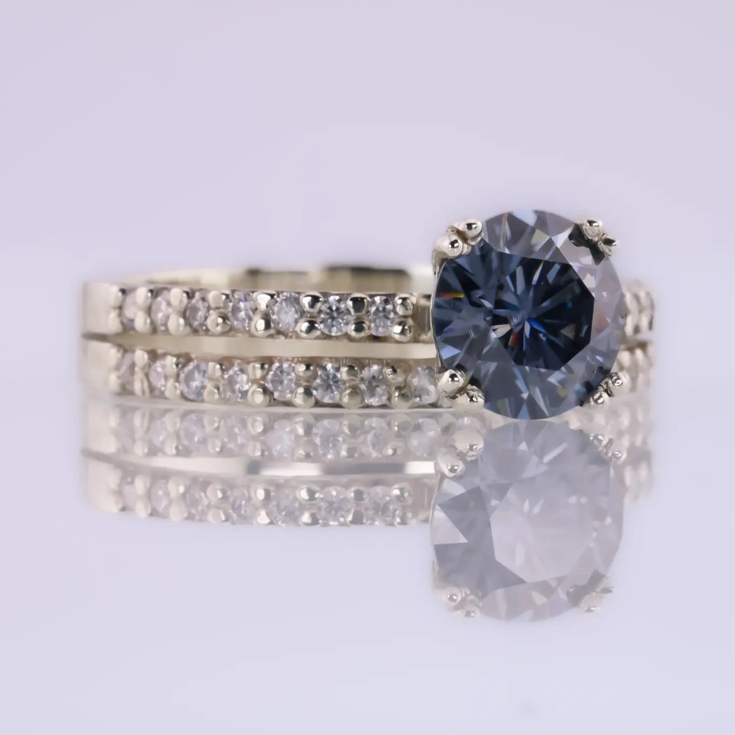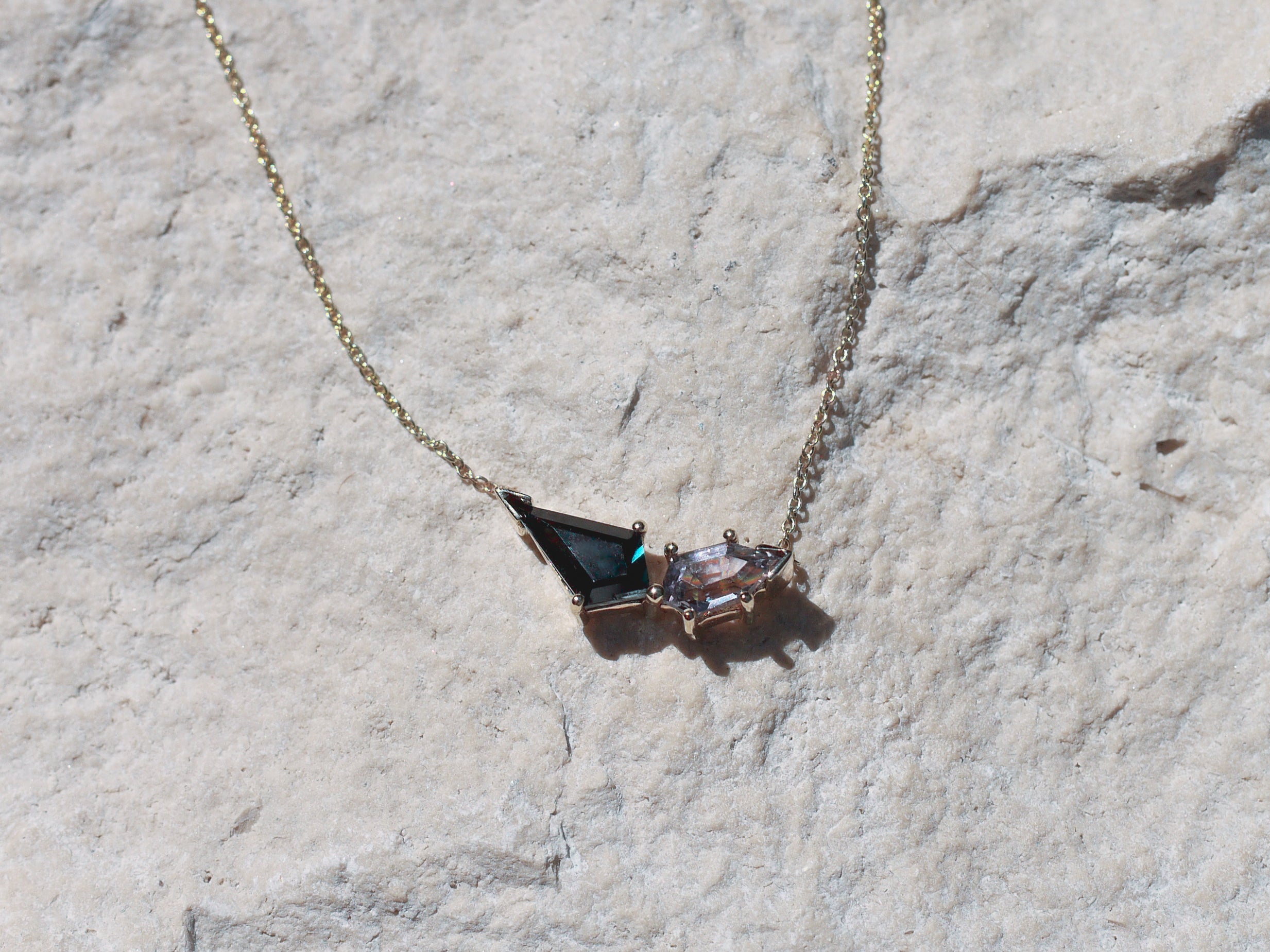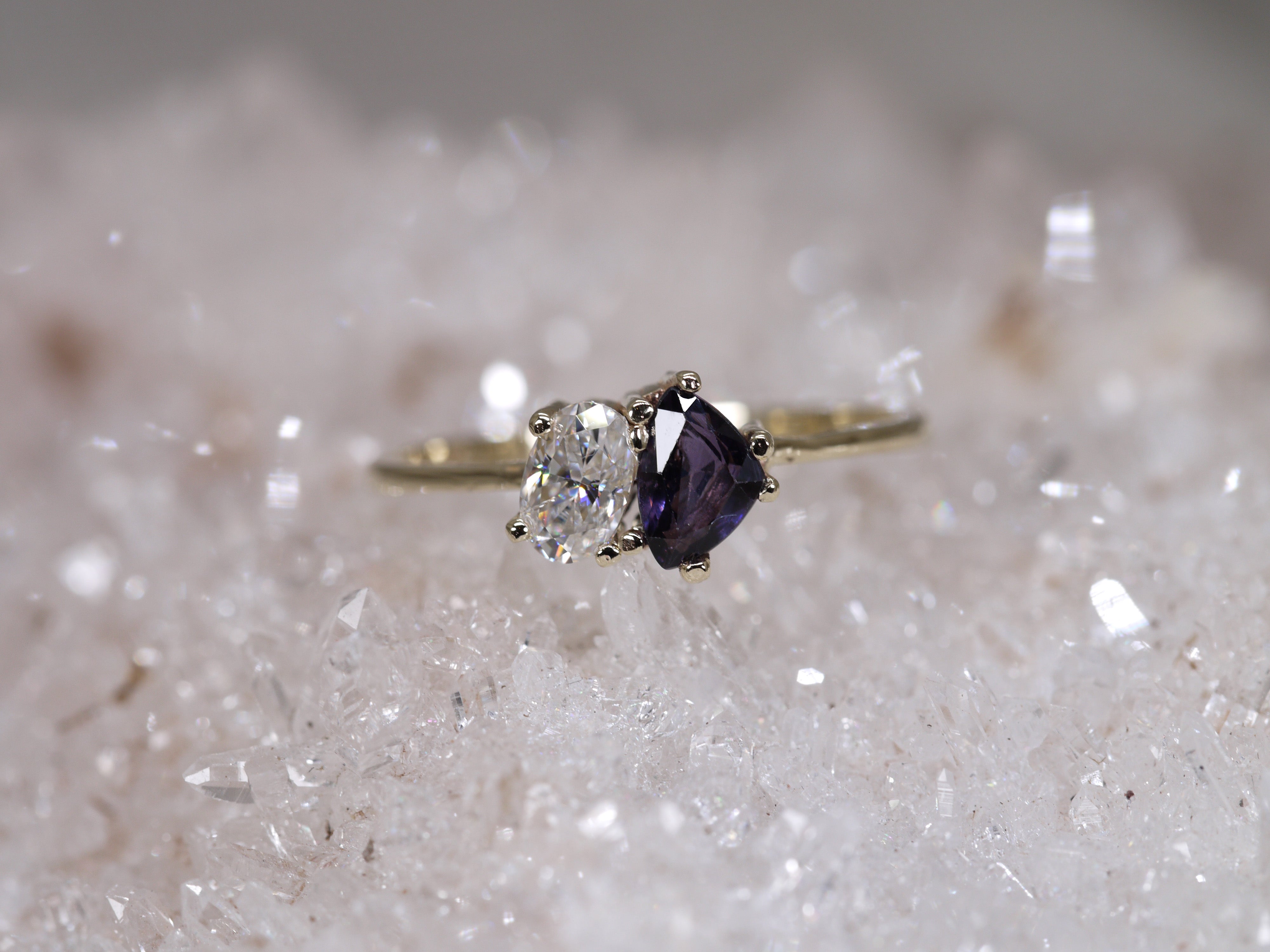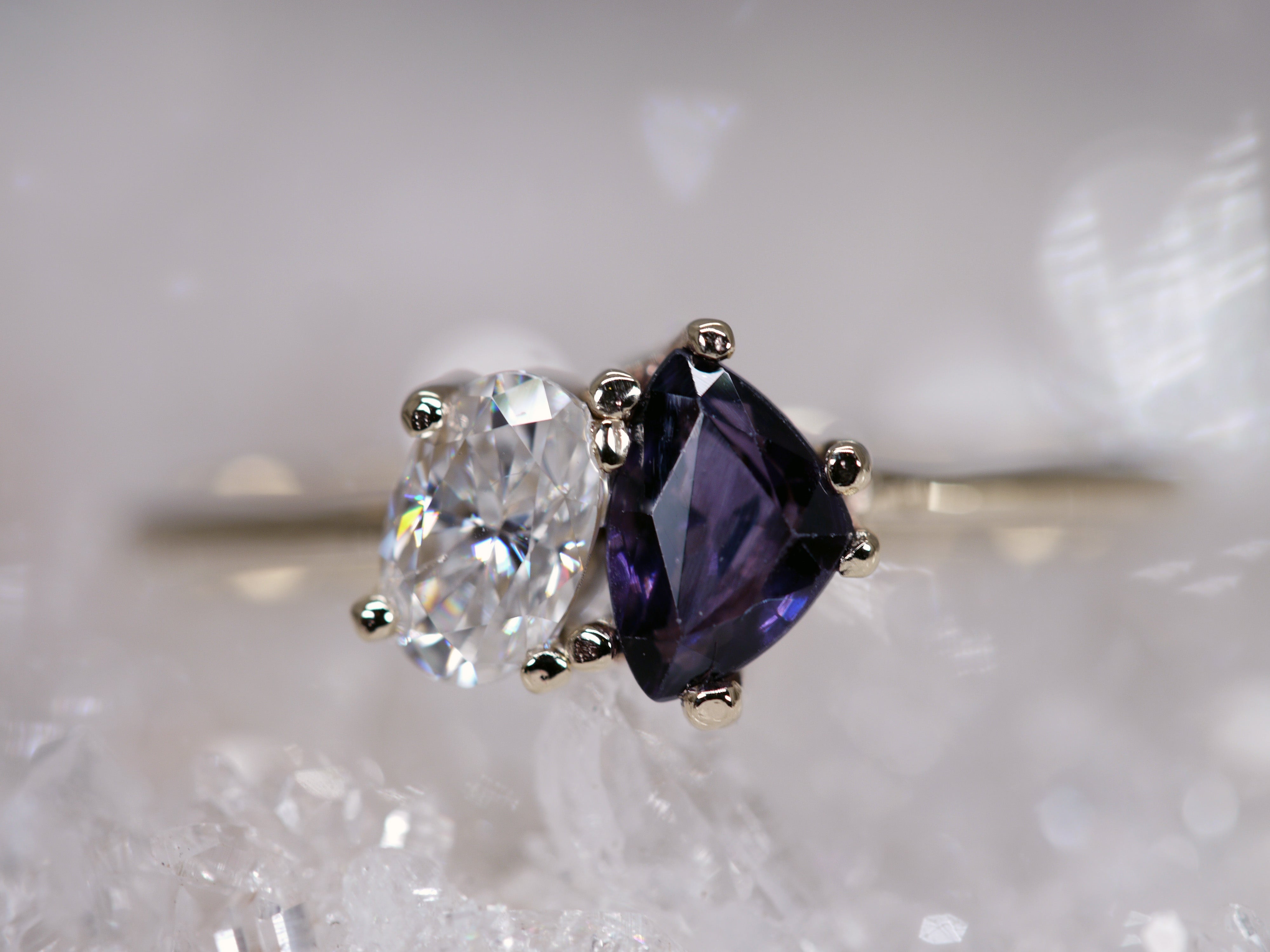 Luna's Trillion Sapphire & Oval Moissanite - Toi et Moi Engagement Ring