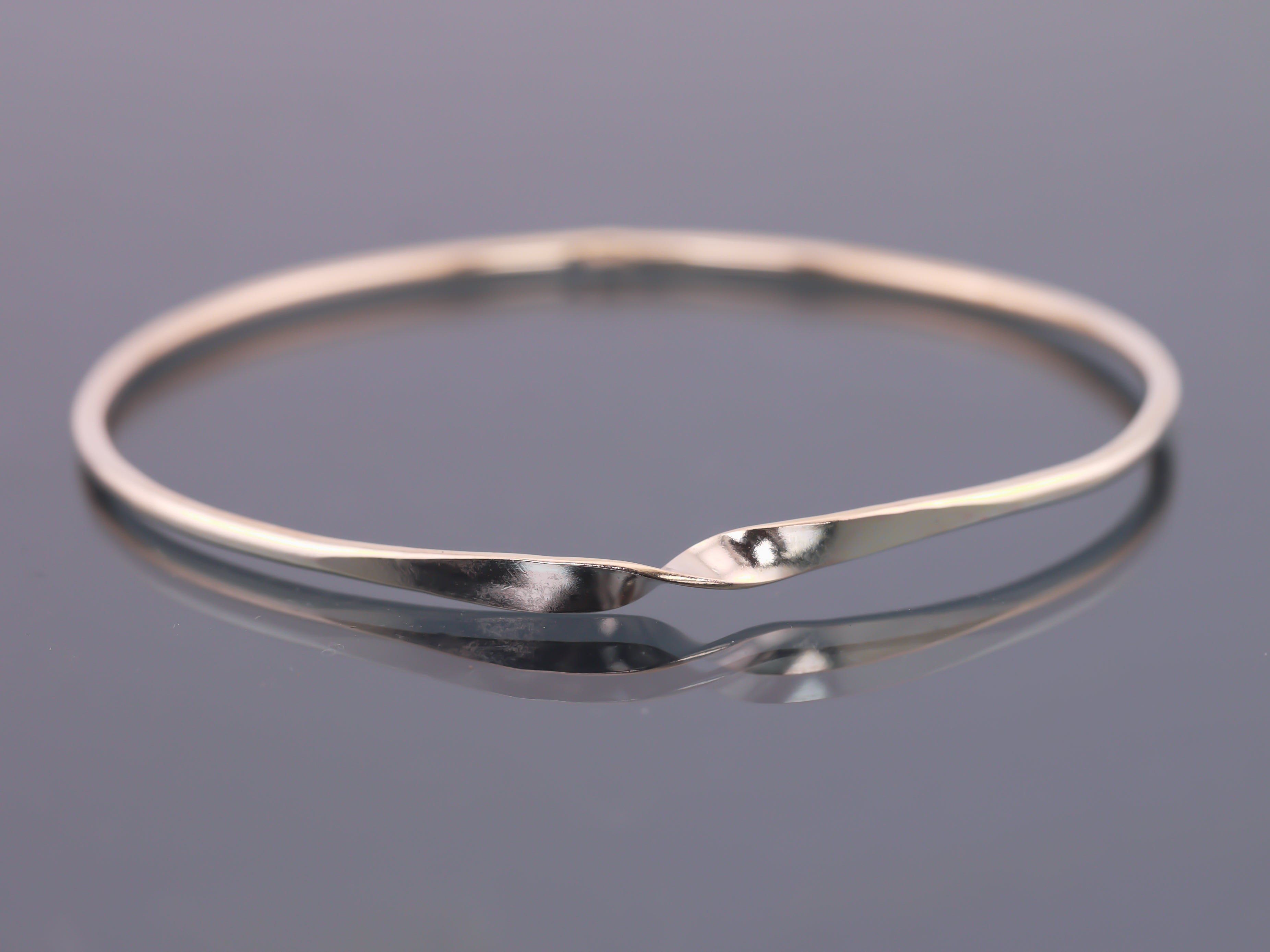 The Hybrid Mobius Bangle is 2mm wide and handmade with a Mobius centre segment.