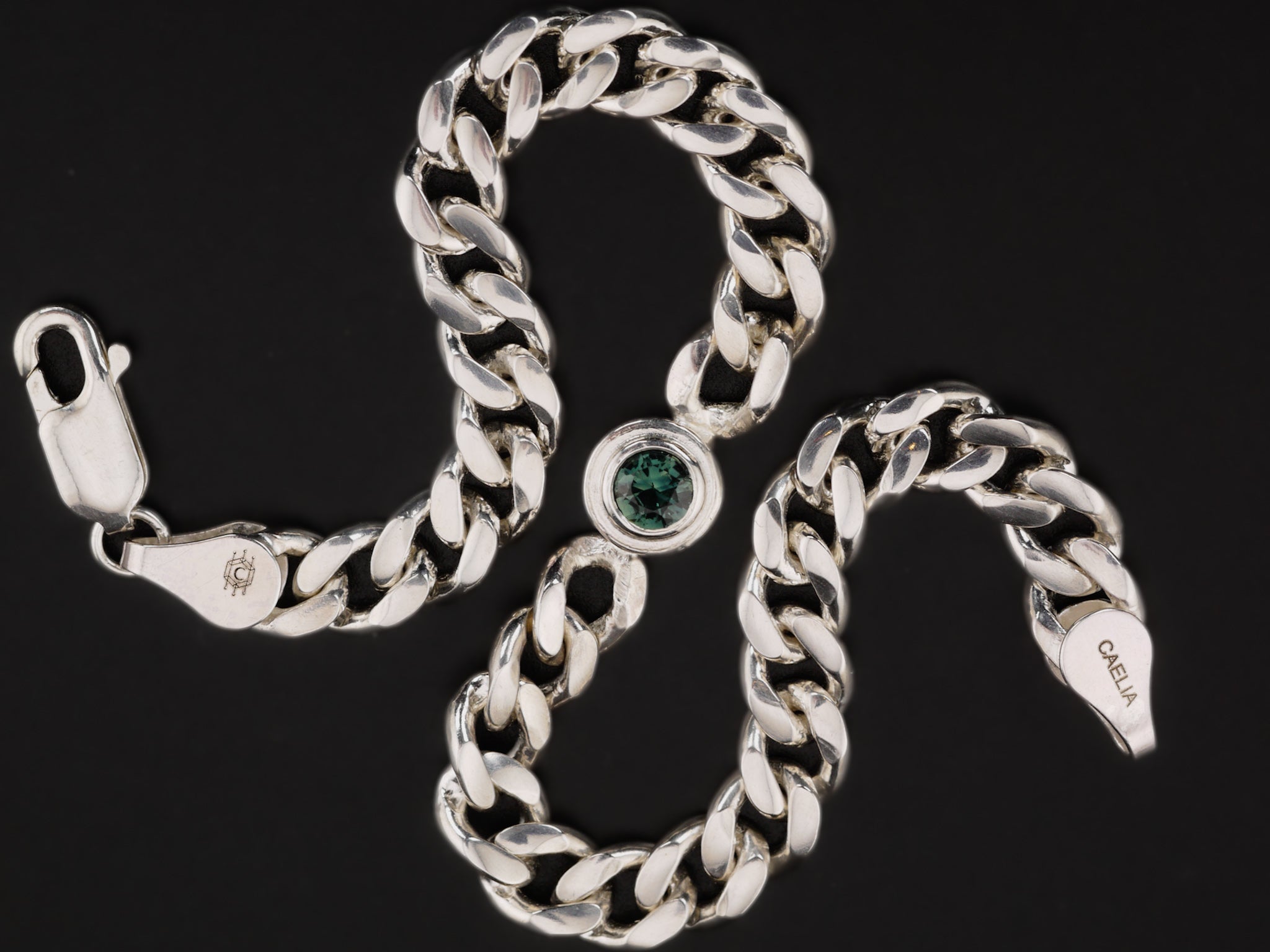 TIRESIAS Cuban Bracelet with Teal Sapphire
