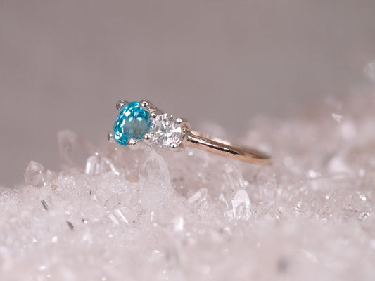Freeform Swiss Blue Topaz & Moissanite OOAK - Toi et Moi Engagement Ring