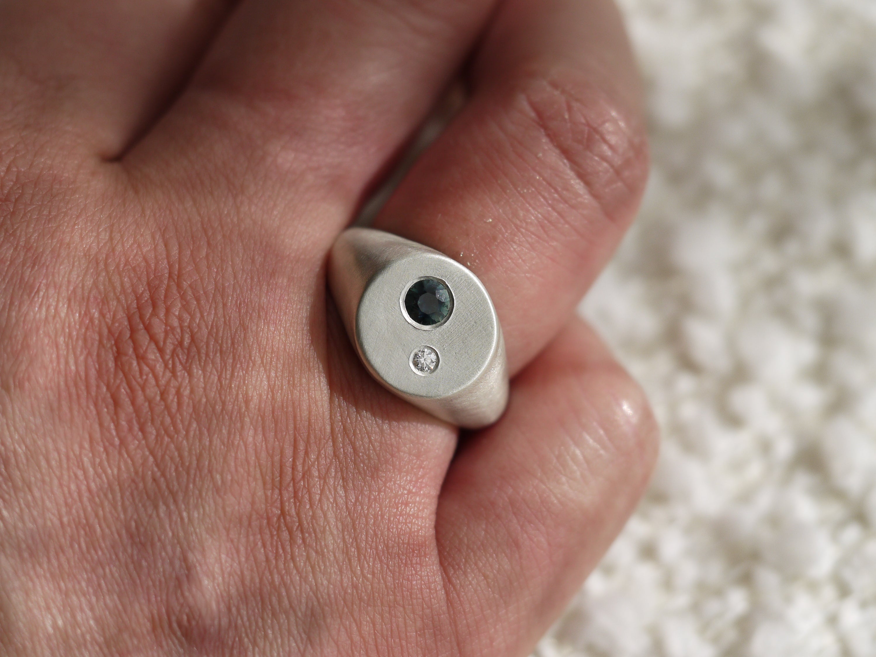 ASTRAEUS Signet Ring with Moissanite & Sapphire - Sterling Silver