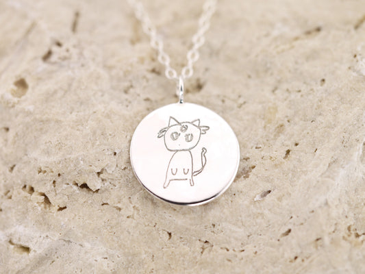 Personalised Hand Drawn Engraved Circle Pendant Necklace