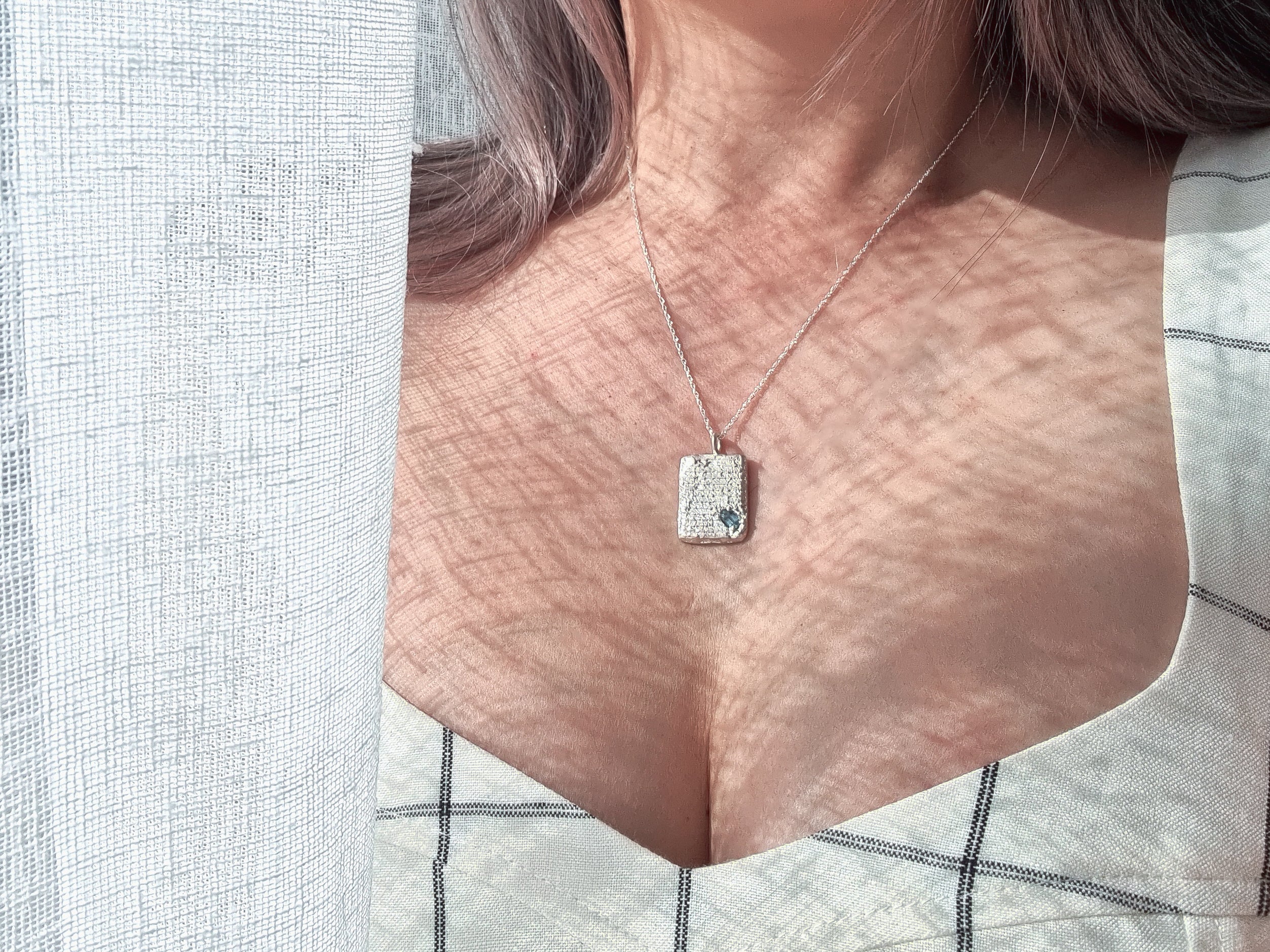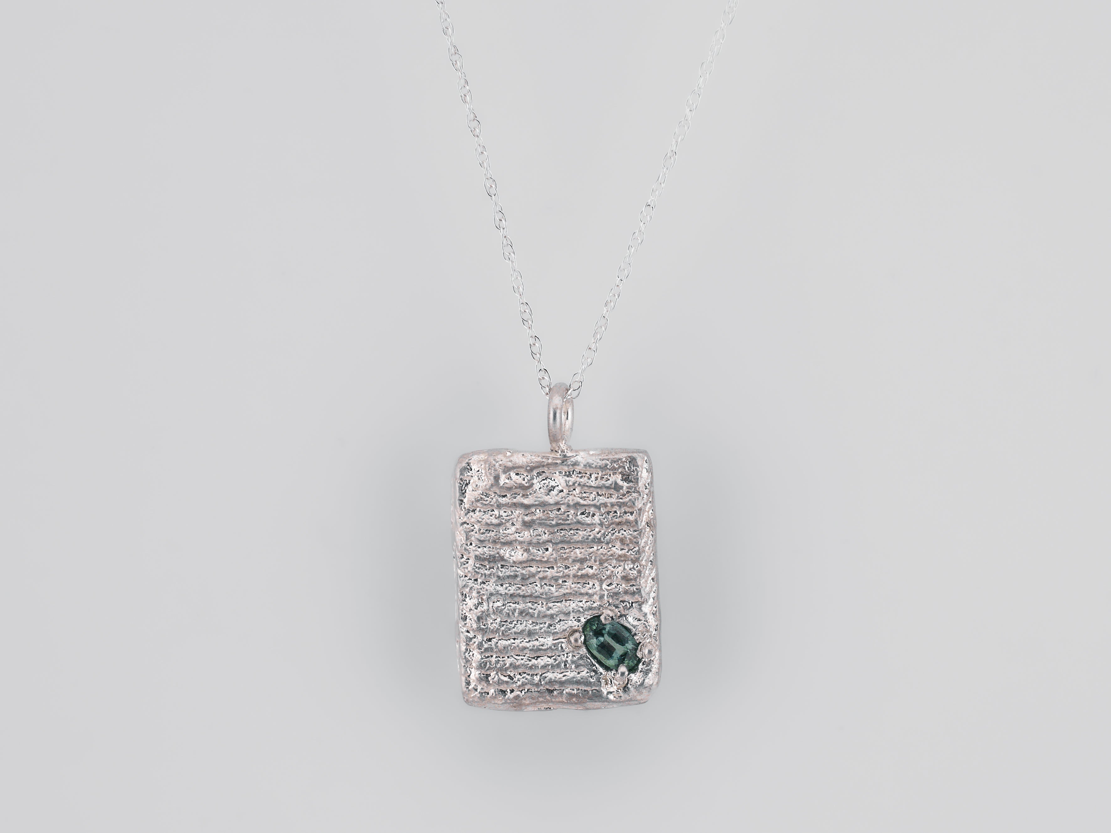CUTTLEFISH CASTED Tablet Pendant Necklace with Australian Teal Sapphire