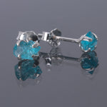 Check out these electrifying stud earrings showcasing a pair of raw Paraiba Apatite gemstones and set in a sterling silver claw setting. These earrings are seriously something else - the Paraiba Apatite stones have a vivid electric blue color that pictures just don't justify. The stones are totally raw and untreated, so each earring is completely unique.