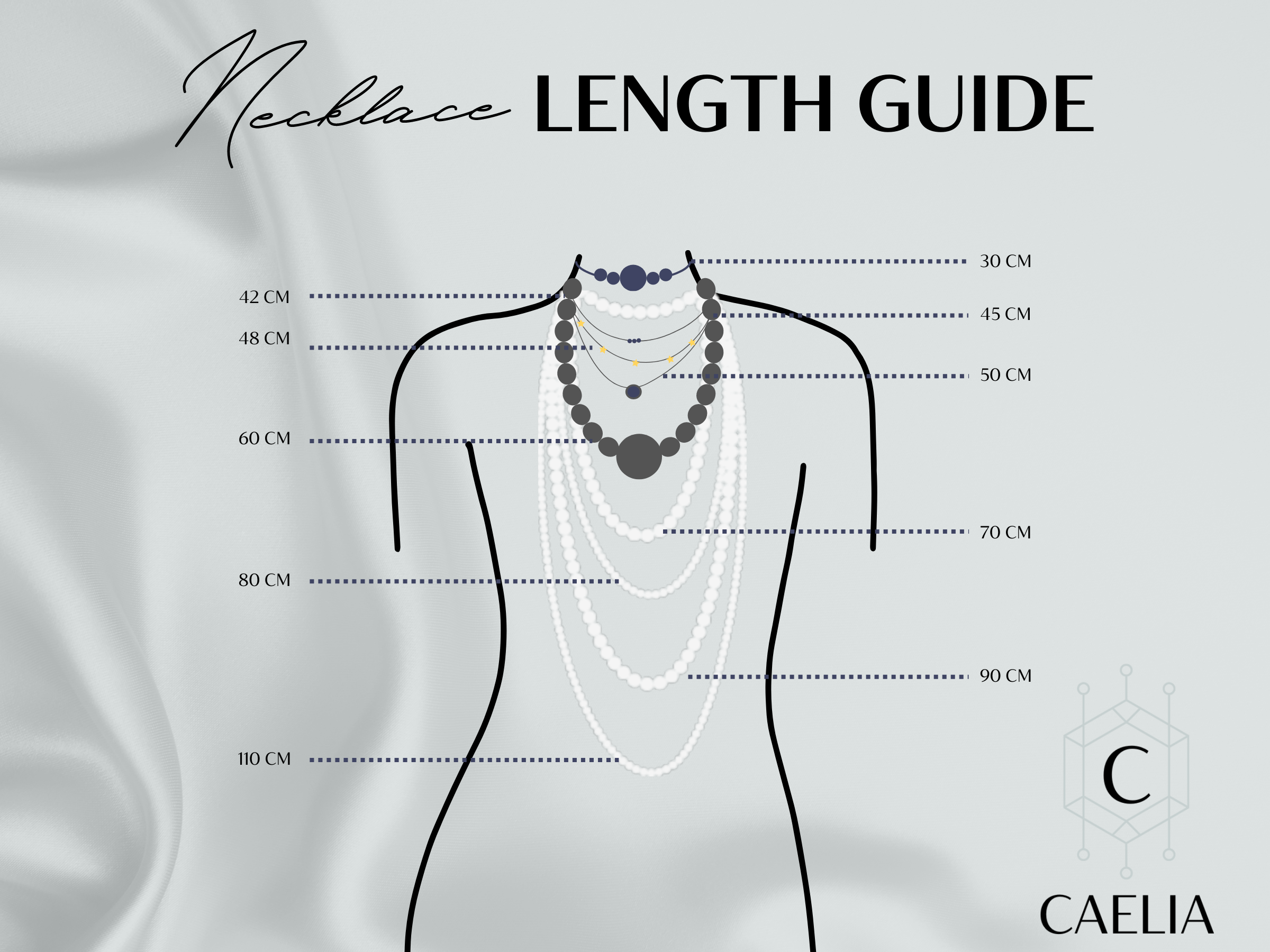 • Sterling Silver necklace ranges from 42cm to 60cm. Each will also include a 5cm extender chain