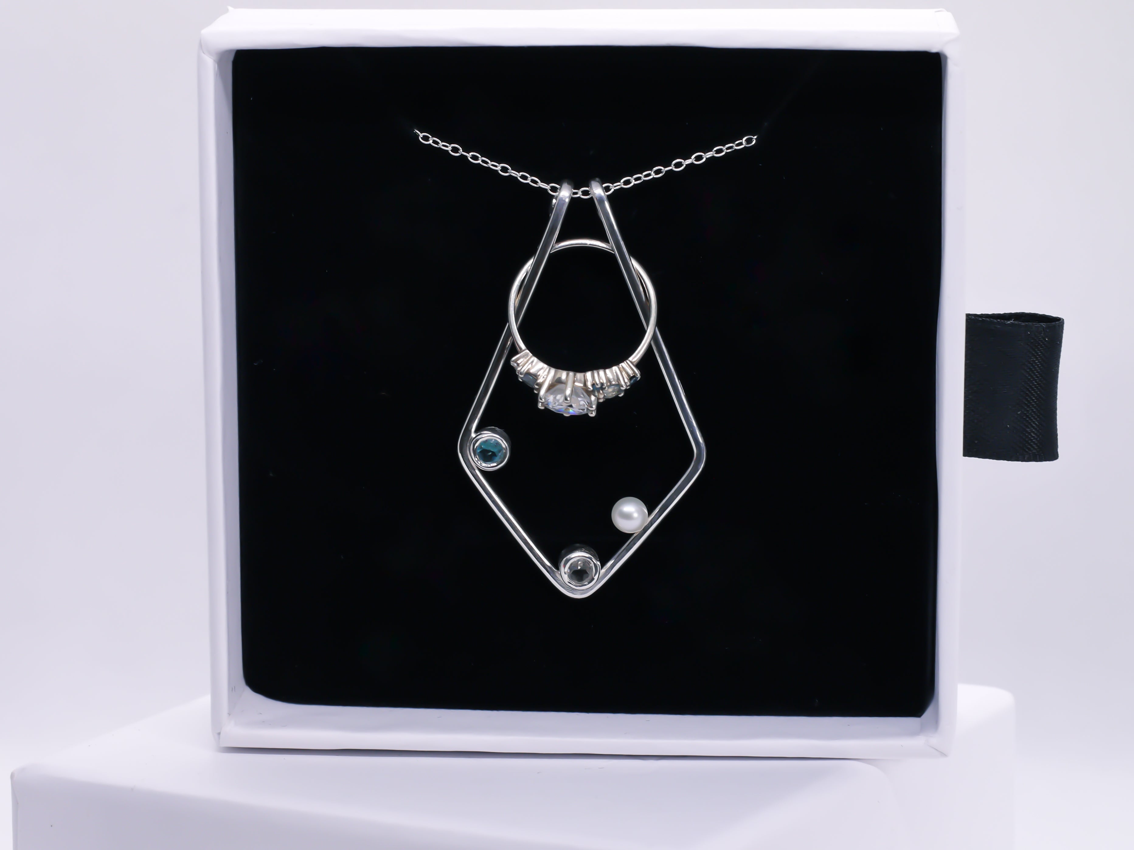 MEDEA III Ring Holder Necklace - Sapphires and Natural Diamond