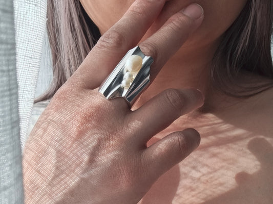 DRAPED Statement Ring with Pearls - Sterling Silver