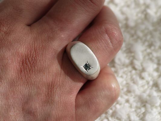 ASTRAEUS Signet Ring with Moissanite & Sapphire - Sterling Silver