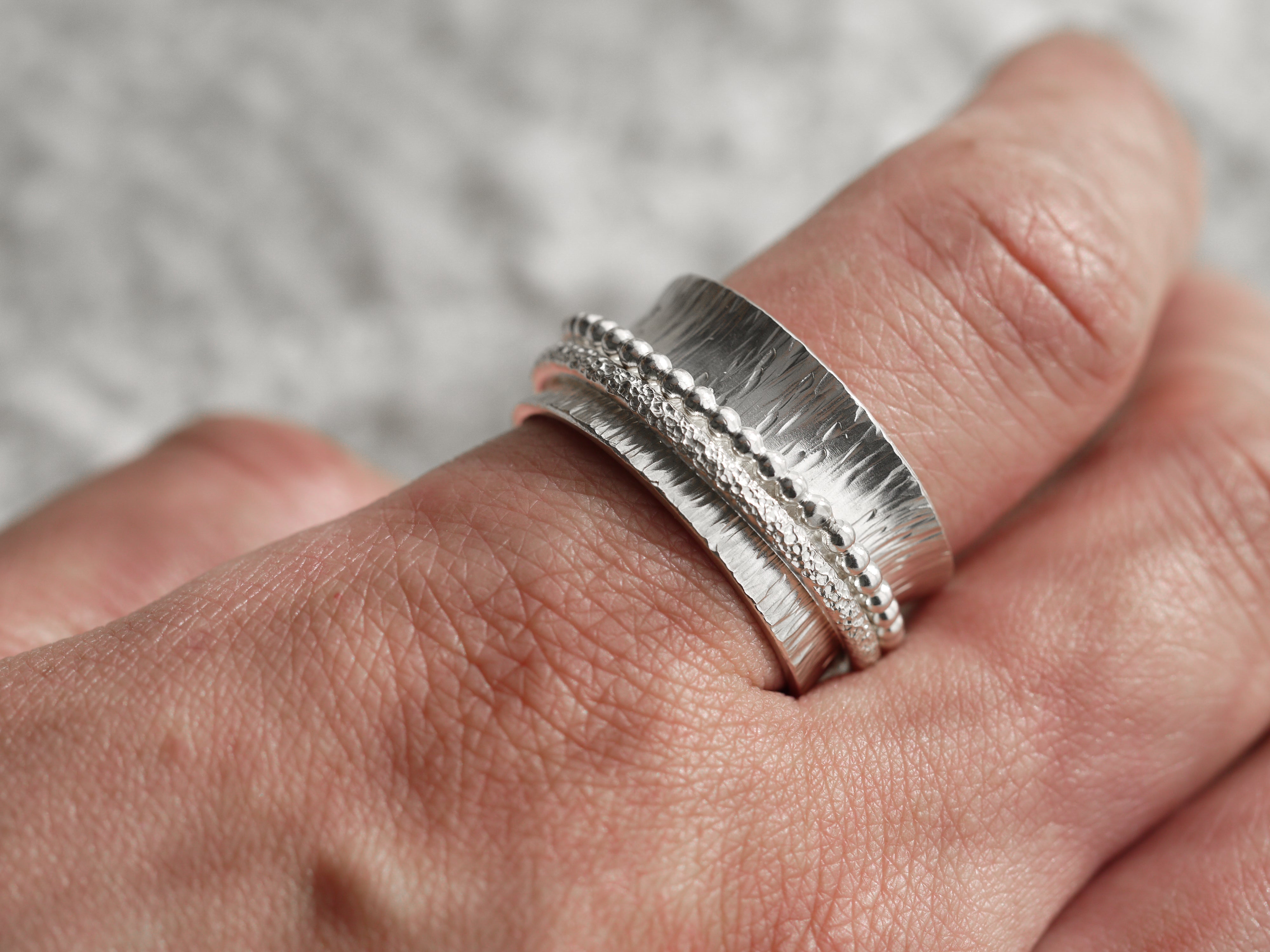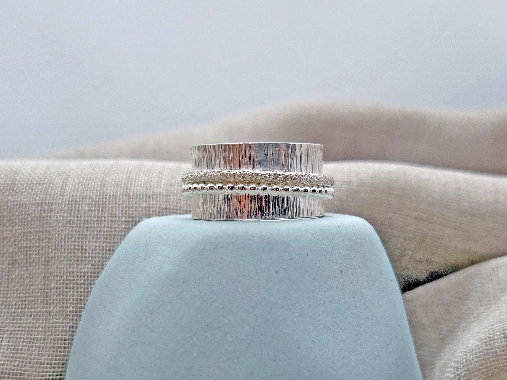 • One Sterling Silver beaded and the second a beautiful sandstone textured Sterling Silver band.