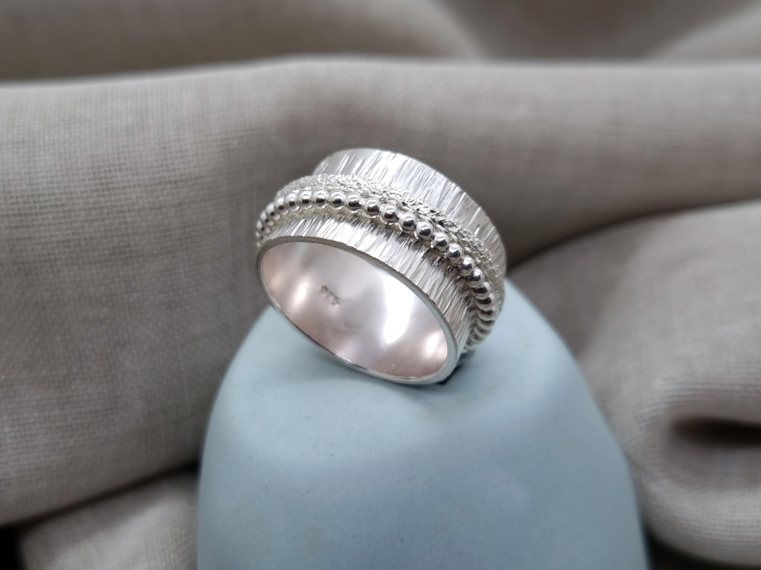 Please note, as this ring is wide (12mm). Consider going up a size from your usual ring size for a comfortable fit.