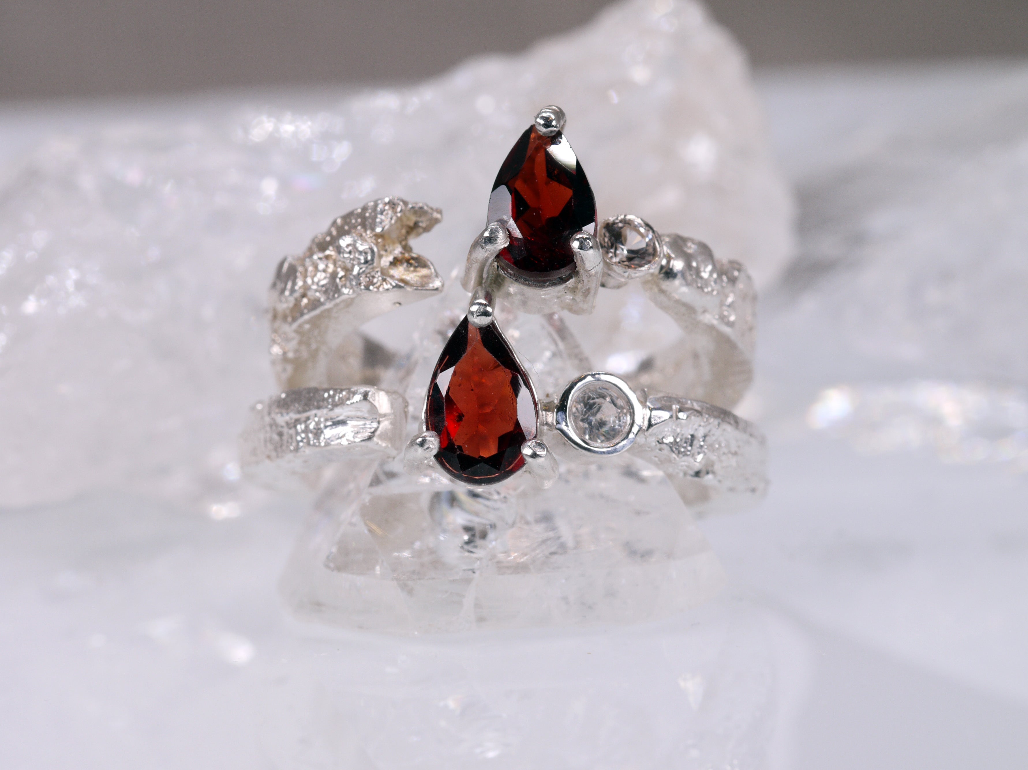 CRIMSON DROPLET Terra Ring - Red Garnet and White Sapphire