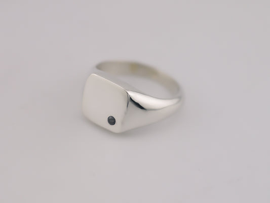 Minimalist Square Signet Ring with Salt and Pepper Diamond