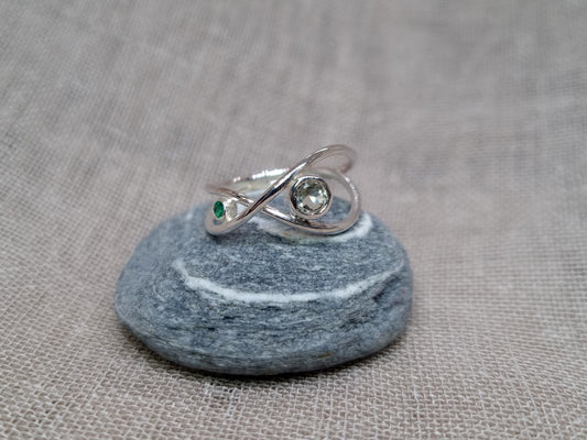 CALYPSO Minimal Wave Ring - Green Amethyst & Emerald