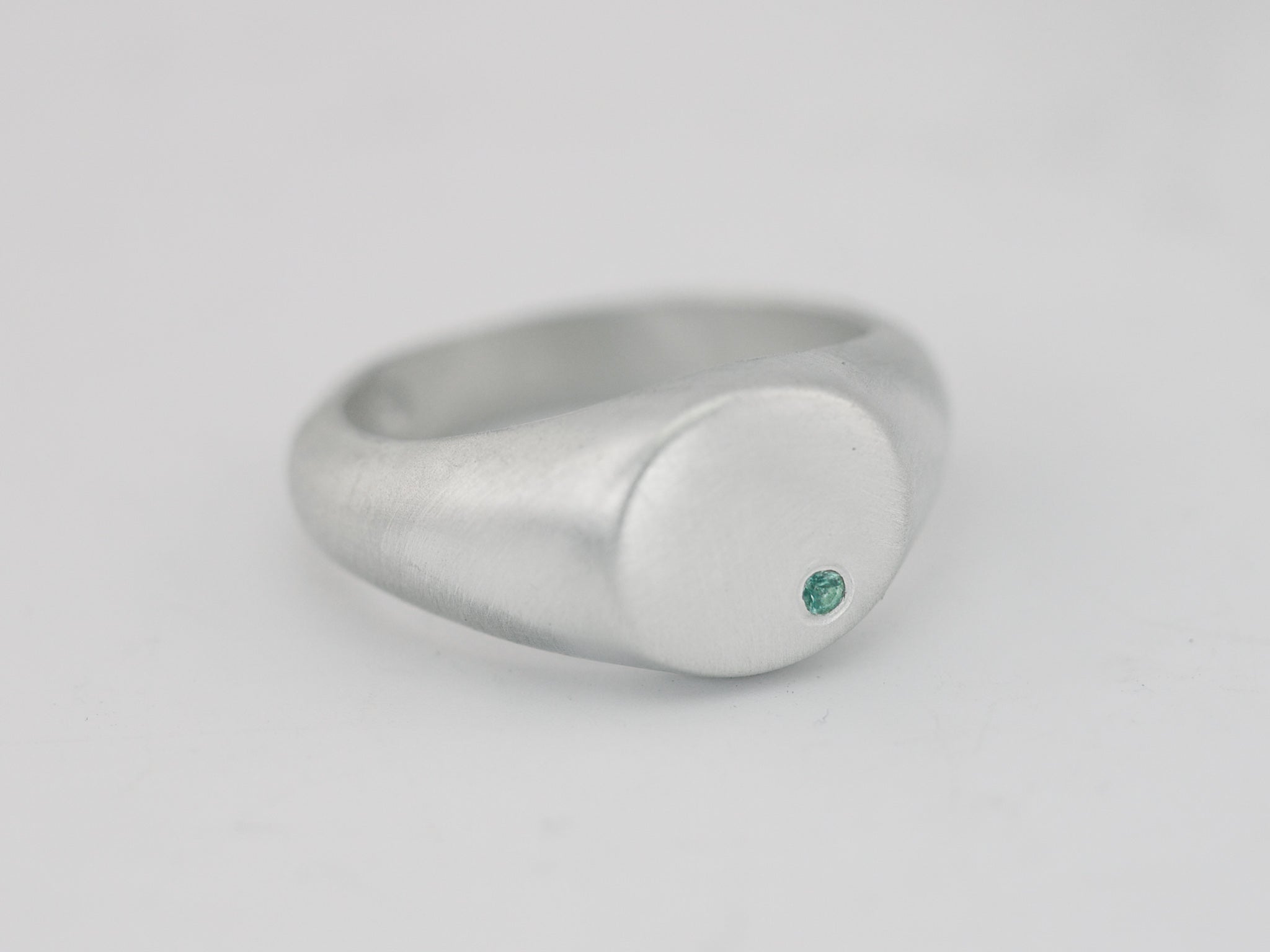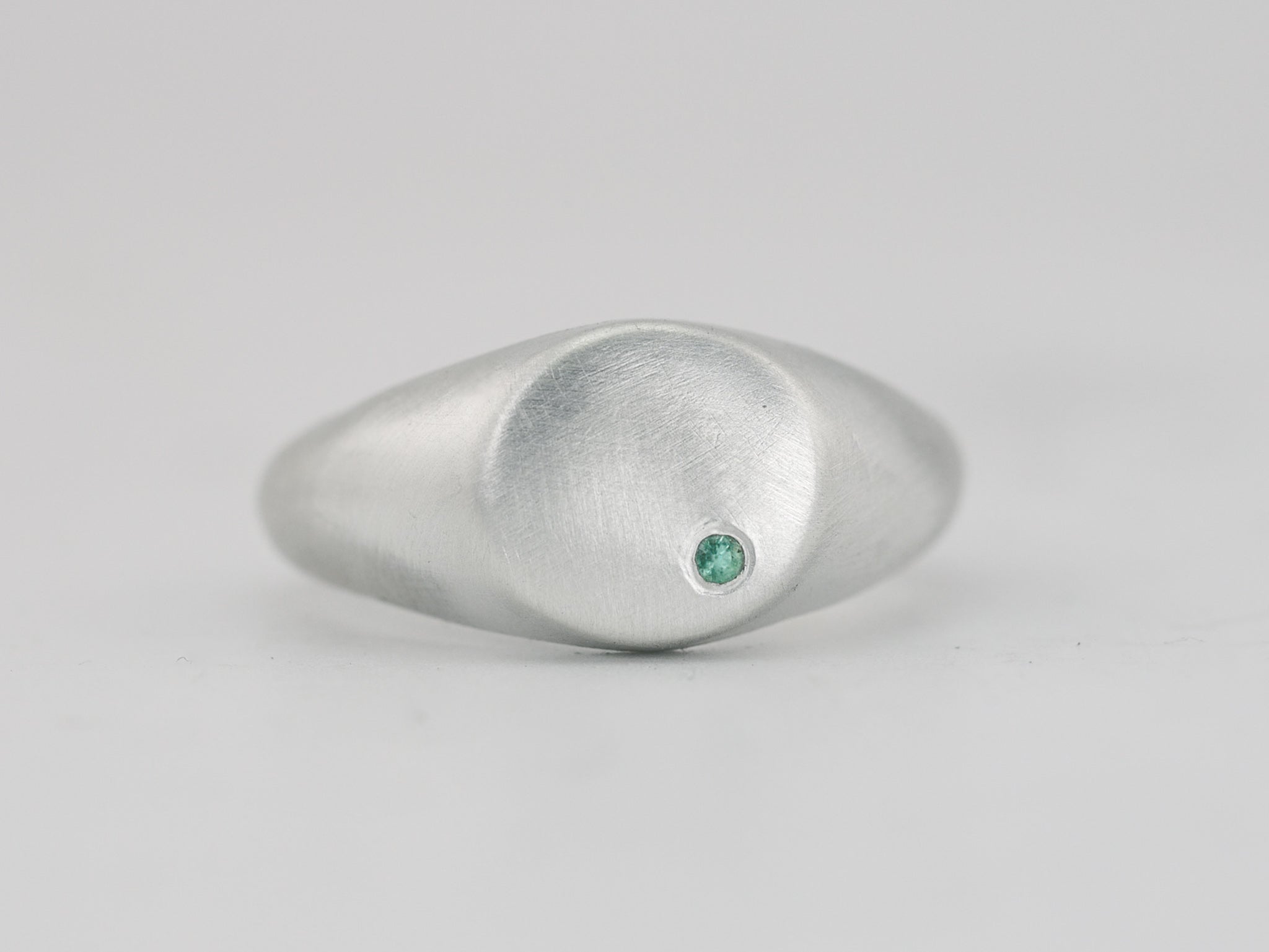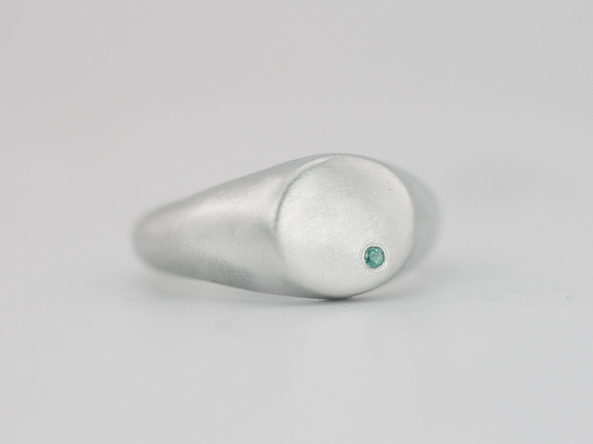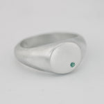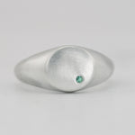 Minimalist Round Signet Ring with Emerald - Sterling Silver