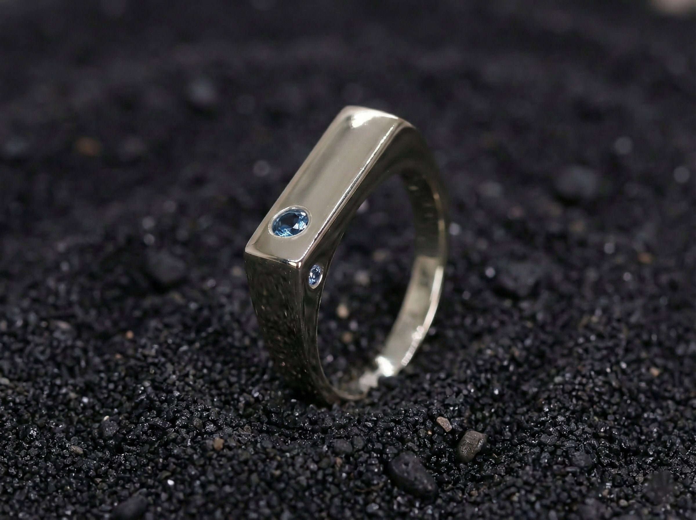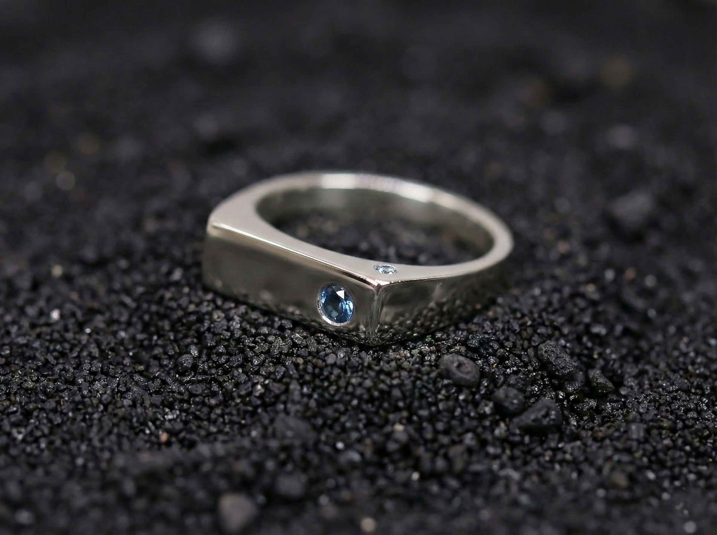 ASTRAEUS Signet Ring with Moissanite & Sapphire - Sterling Silver