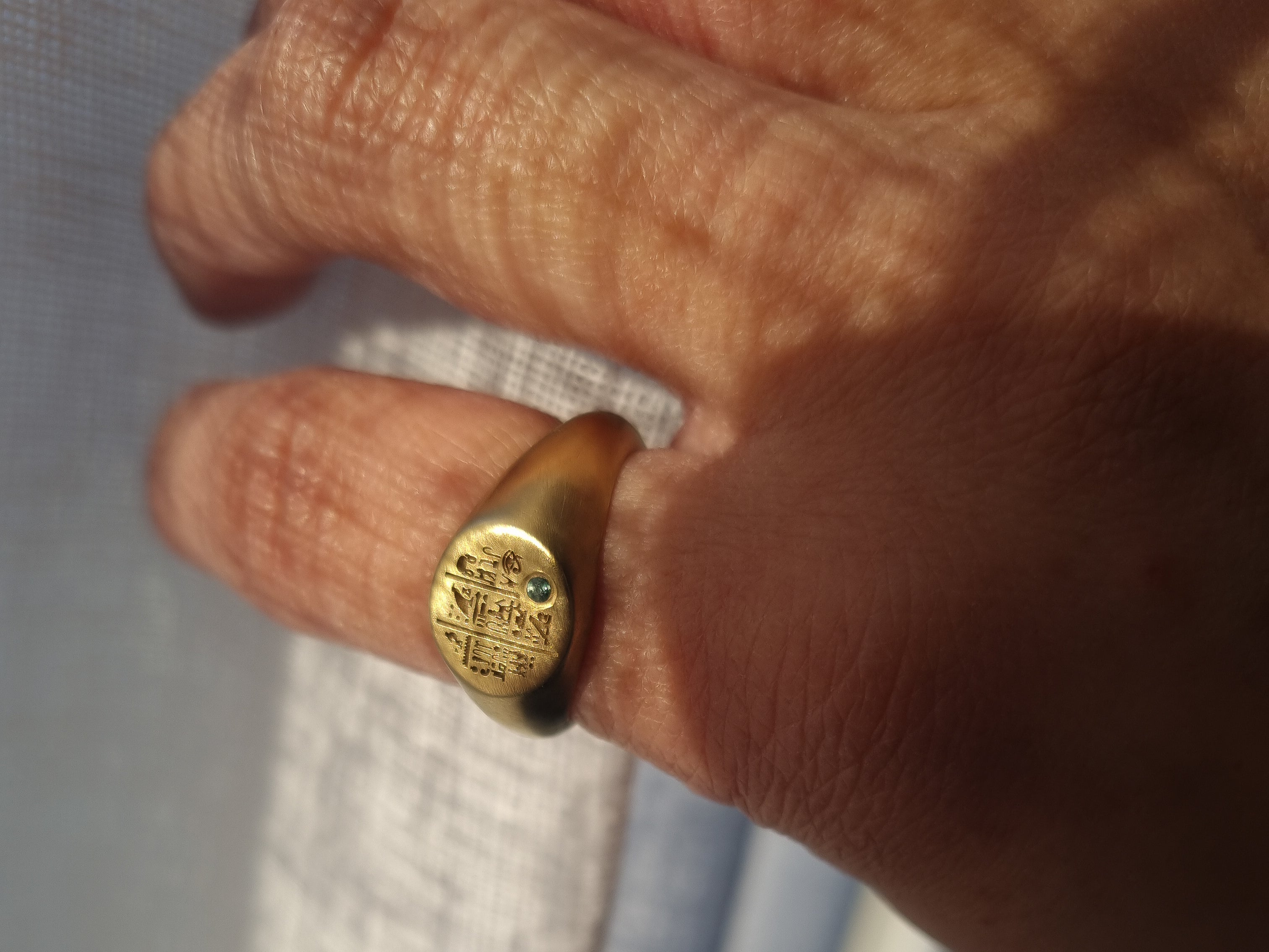 SETI Signet Ring with Emerald - 22k Gold Vermeil