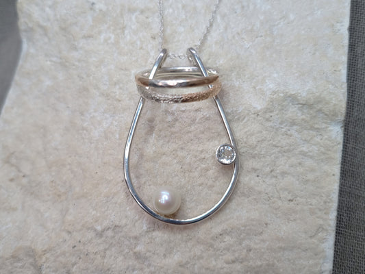 RHEA Ring Holder Necklace - Freshwater Pearl & White Topaz