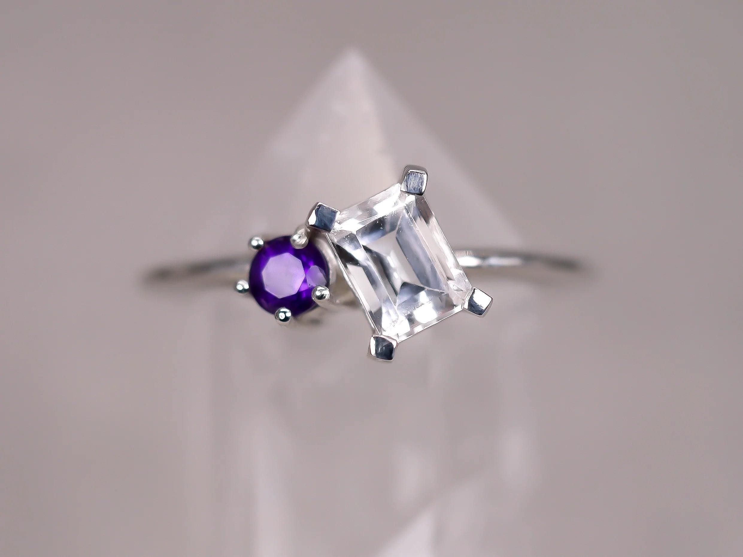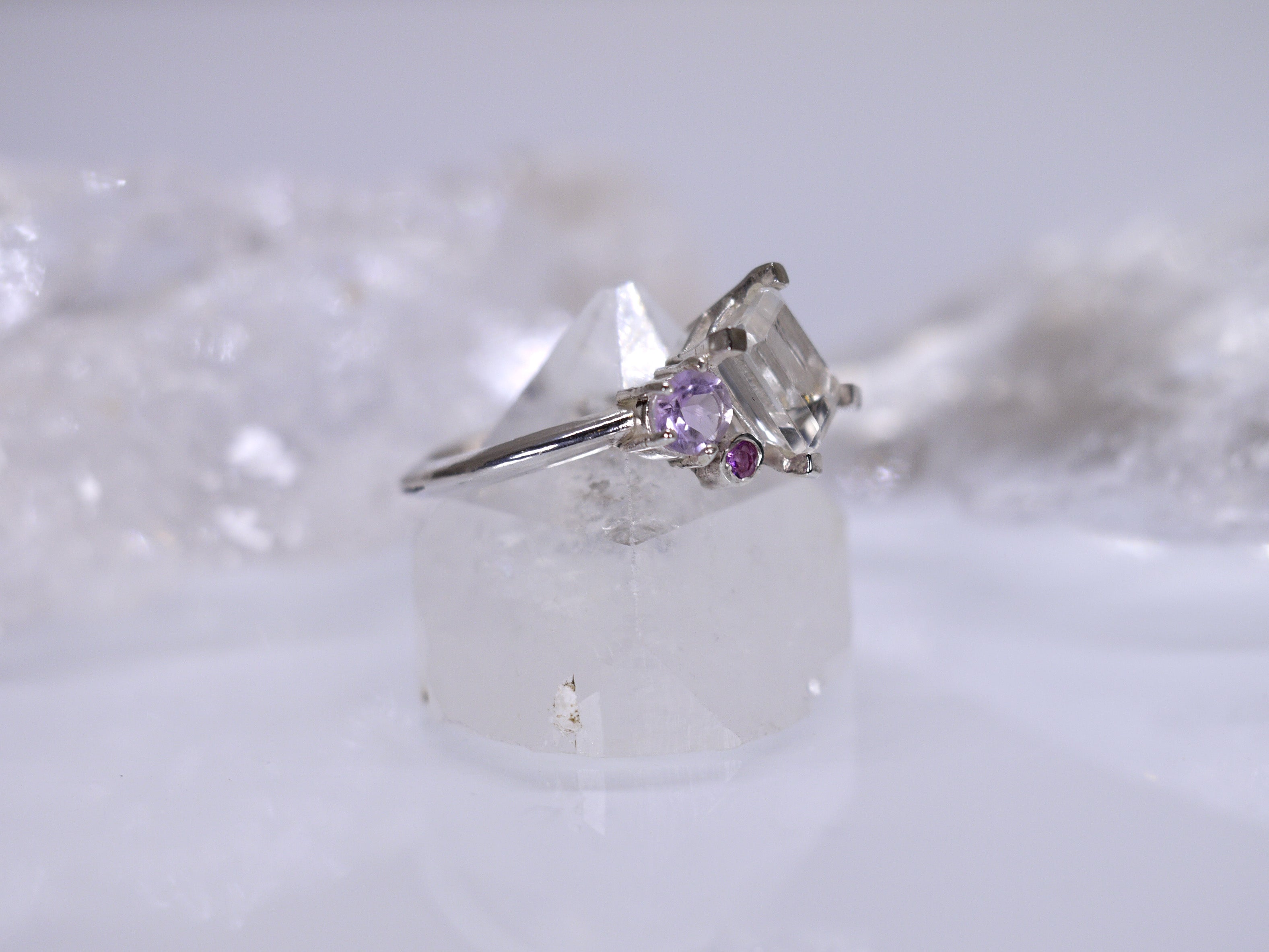 ESME Ring - White Topaz and Purple Amethyst