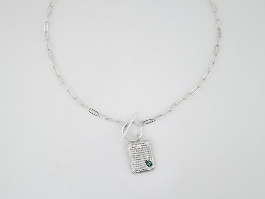 CUTTLEFISH CASTED Tablet Toggle Necklace with Australian Teal Sapphire - OOAK