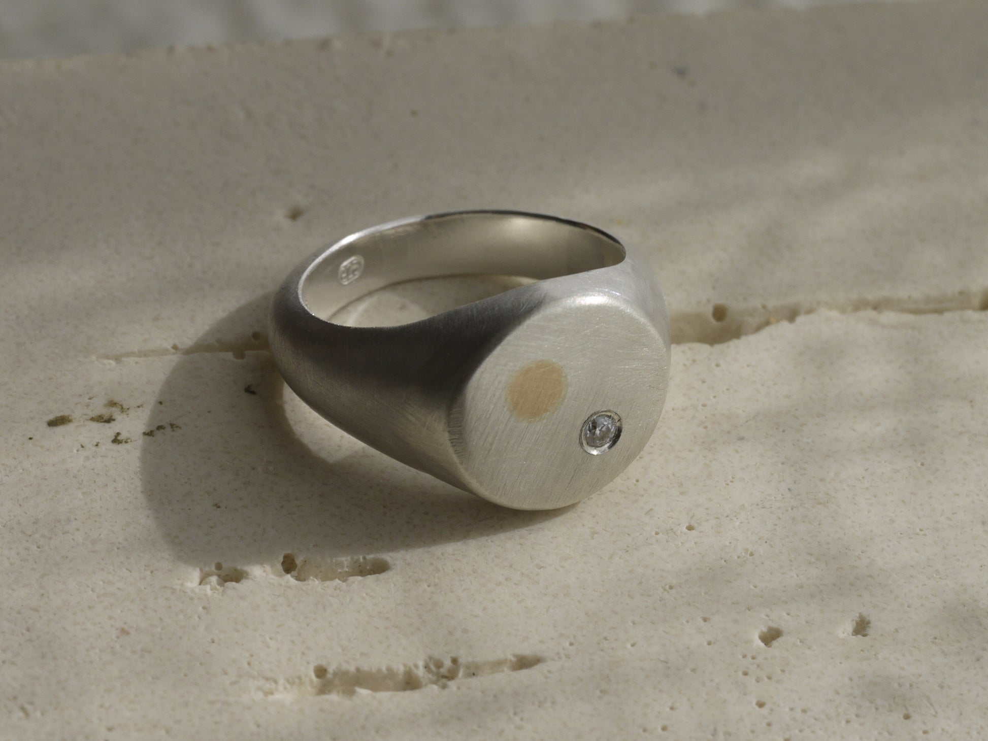 HELIOS Signet Ring with Moissanite - Sterling Silver & 9k Yellow Gold