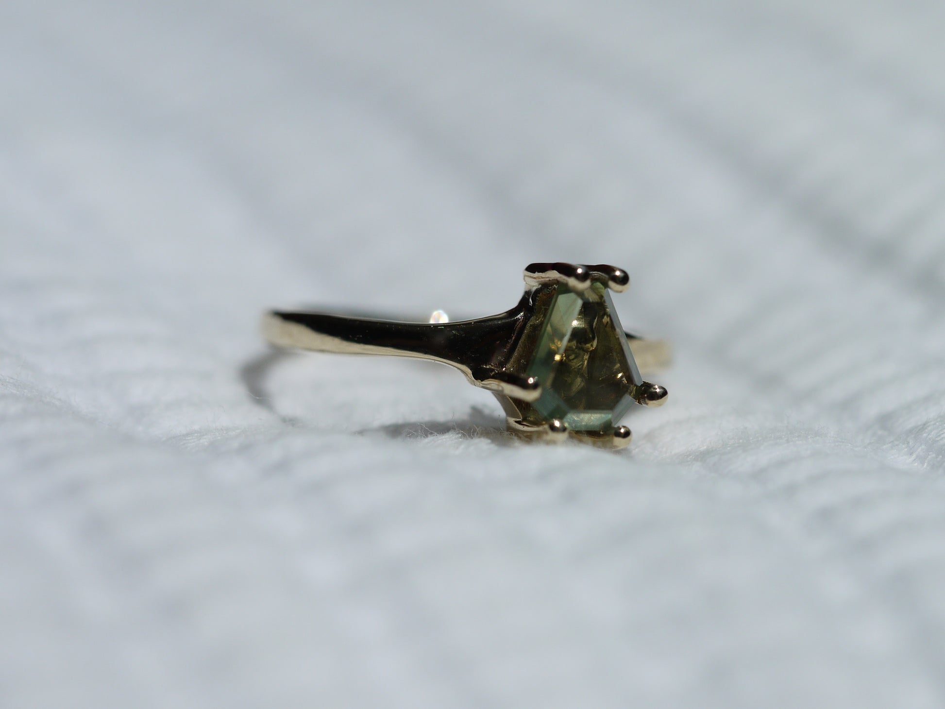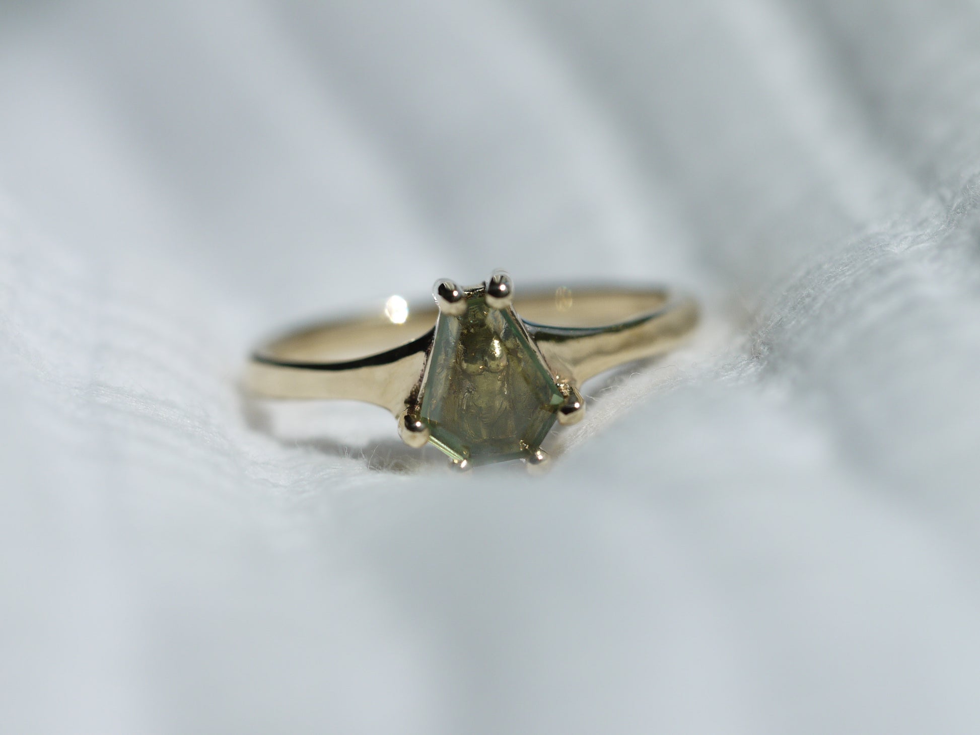 At first glance, you see a stunning 0.81ct portrait cut Australian Sapphire. But this stone acts as a window, revealing a miniature sculpture of Venus’ torso cast in solid 9k gold. She is protected, yet perfectly visible. This ring is an ode to the hidden muse of divine femininity.